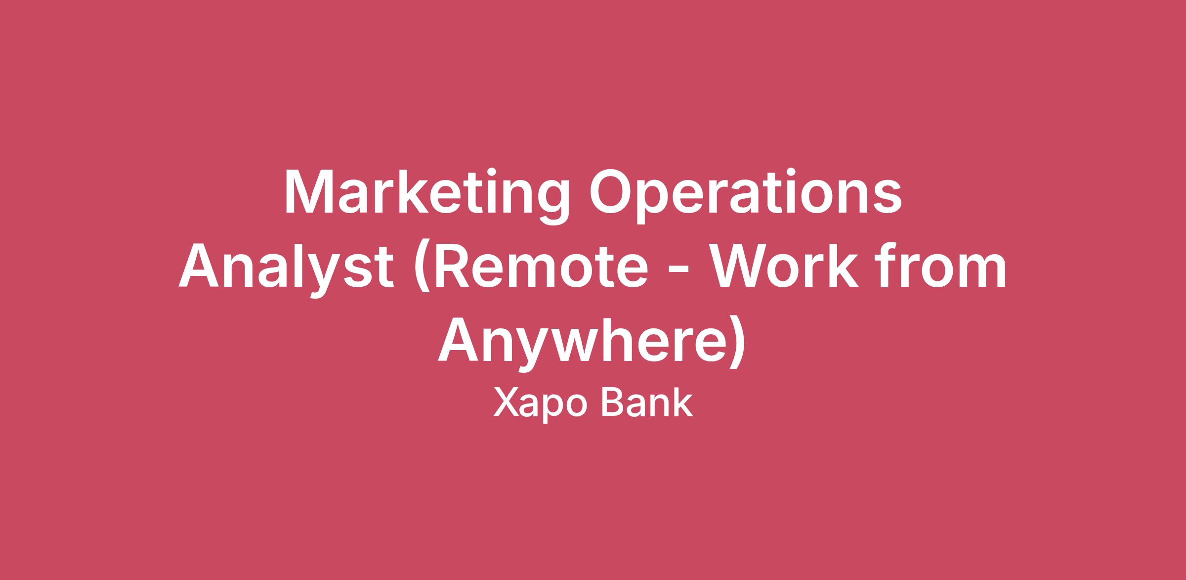 Marketing Operations Analyst (Remote - Work from Anywhere)