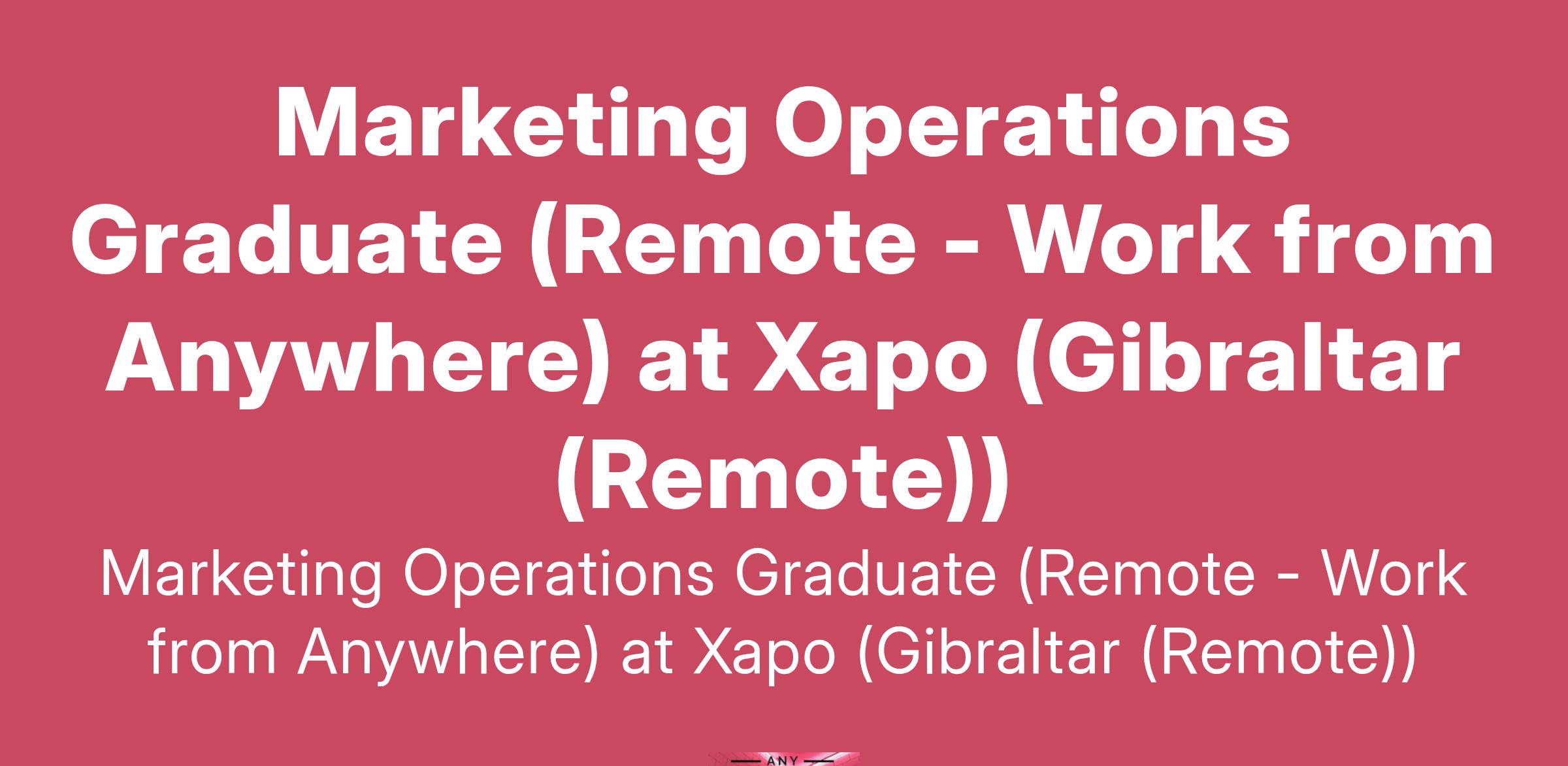 Marketing Operations Graduate (Remote - Work from Anywhere) at Xapo (Gibraltar (Remote))