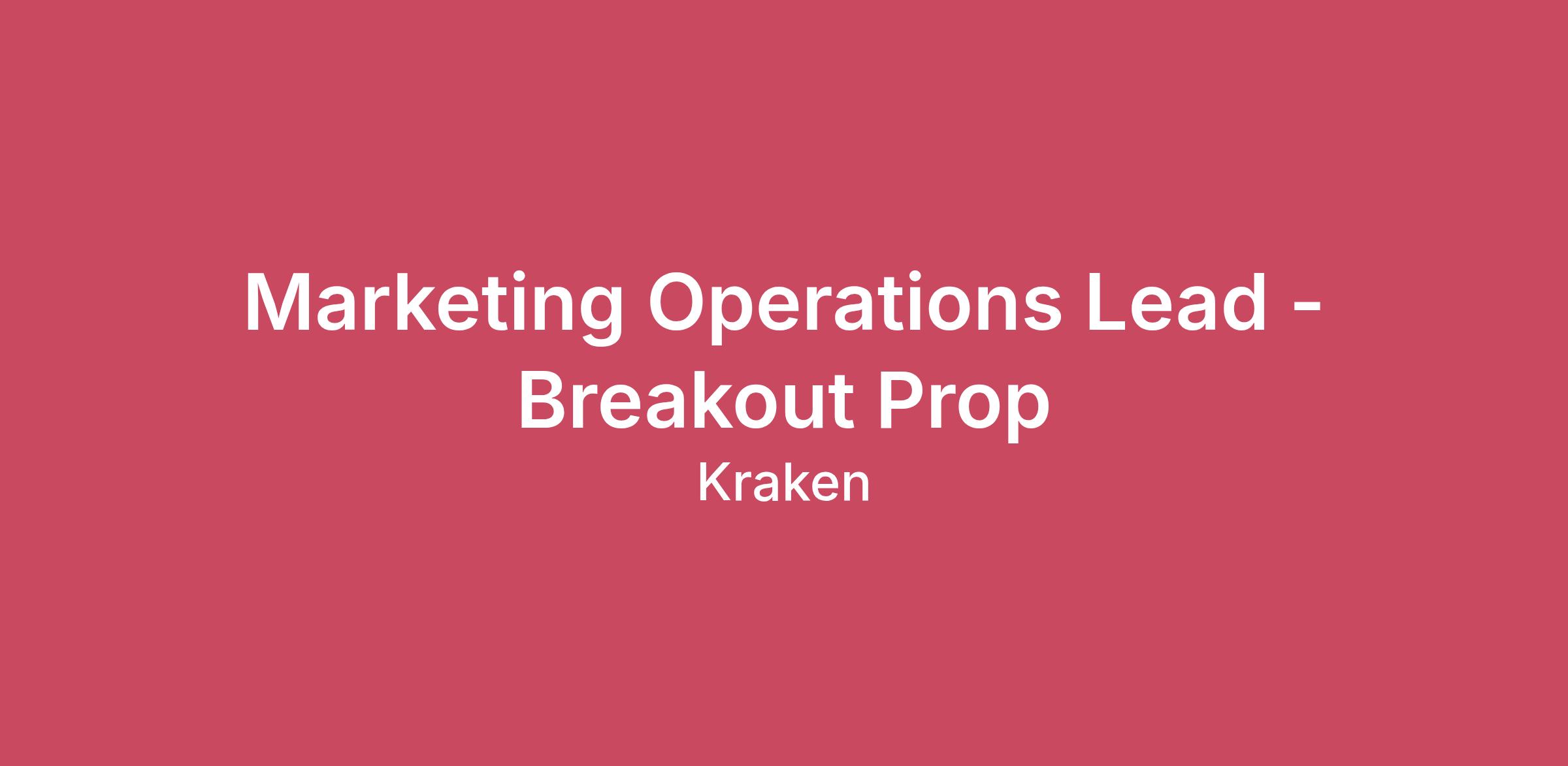 Building the Future of Crypto Our Krakenites are a world-class team with crypto conviction, united by our desire to discover and unlock the potential of crypto and blockchain technology.What makes us different? Kraken is a mission-focused company rooted in crypto values. As a Krakenite, you’ll join us on our mission to accelerate the global adoption of crypto, so that everyone can achieve financial freedom and inclusion. For over a decade, Kraken’s focus on our mission and crypto ethos has attracted many of the most talented crypto experts in the world.Before you apply, please read the Kraken Culture page to learn more about our internal culture, values, and mission. We also expect candidates to familiarize themselves with the Kraken app. Learn how to create a Kraken account here.As a fully remote company, we have Krakenites in 70+ countries who speak over 50 languages. Krakenites are industry pioneers who develop premium crypto products for experienced traders, institutions, and newcomers to the space. Kraken is committed to industry-leading security, crypto education, and world-class client support through our products like Kraken Pro, Desktop, Wallet, and Kraken Futures.Become a Krakenite and build the future of crypto!Proof of workWe’re looking for a Marketing Ops Lead to bring structure, clarity, and momentum to a fast-growing marketing organization. This person will be both a strategic partner and a hands-on operator — ensuring the marketing engine runs smoothly, efficiently, and intelligently.Reporting directly to the VP, Growth, this role is a critical part of the marketing leadership team. You’ll oversee the systems, processes, and project management frameworks that enable growth marketing, creative, and analytics teams to execute at scale. You’ll manage cross-functional initiatives, streamline workflows, and ensure flawless execution across campaigns, launches, and infrastructure projects.The ideal candidate is deeply embedded in growth marketing — not just supporting it from the outside, but fluent in its channels, metrics, and cadences. You understand how growth teams think and operate, and you’re comfortable rolling up your sleeves alongside them to drive outcomes.The opportunityBuild and optimize marketing operations: Design and implement the systems, tools, and processes that keep the marketing organization running efficiently and effectively.Lead cross-functional projects: Coordinate high-impact initiatives across growth, lifecycle, creative, and product marketing — ensuring alignment, accountability, and flawless execution.Operationalize launches: Manage timelines, deliverables, and dependencies for marketing campaigns and product launches, ensuring no detail is missed and every stakeholder is informed.Implement and manage tools: Own marketing’s adoption of systems like project management software and asset management platforms, as well as playing a key role in other marketing tool integration e.g. CRM. Align teams around clear processes that drive efficiency and consistency.Bridge creative and growth: Ensure creative production is streamlined and data-informed, running experimentation matrices, tracking creative performance, and optimizing resources to support growth marketing needs.Operational liaison with parent company: As Breakout integrates with Kraken more deeply, marketing operations will play a key role in process development for co-marketing efforts.Operationalize experimentation frameworks: Manage a testing pipeline that enables the team to test creative, channels, and messaging efficiently with minimal wasted spend.Drive operational excellence: Standardize planning, prioritization, and reporting processes to ensure visibility, focus, and momentum across marketing functions.Champion AI-powered workflows: Identify and implement AI tools and automation to accelerate the team’s output — from prompt pipelines to agent-based workflows that reduce manual lift across the marketing org.Skills you should HODL5+ years of experience in marketing operations, project management, or integrated marketing management, ideally in a high-growth tech, fintech, or crypto environment.Strong understanding of growth marketing — channels, metrics, experimentation, and how growth teams operate. You’re embedded in the work, not just coordinating around it.Deep expertise in project management and systems thinking — able to connect strategy to execution seamlessly.Proven success managing complex, cross-functional initiatives from conception through delivery.Proficiency with AI tools such as Claude, ChatGPT, and similar platforms. You use AI daily to accelerate your work and bring that mindset to the team. Bonus: experience building automations or agent-based workflows using AI.Skilled at implementing and managing marketing tools (CRM, PM, collaboration, analytics) to drive efficiency.Exceptional communication and organizational skills — you bring clarity where there’s complexity and momentum where there’s friction.A connector who thrives on empowering others to focus on their craft by handling the operational heavy lifting.Energized by the pace of a scaling startup and motivated by the challenge of building systems that enable sustainable growth.Unless a specific application deadline is stated in the job posting, applications are accepted on an ongoing basis.Please note, applicants are permitted to redact or remove information on their resume that identifies age, date of birth, or dates of attendance at or graduation from an educational institution.We consider qualified applicants with criminal histories for employment on our team, assessing candidates in a manner consistent with the requirements of the San Francisco Fair Chance Ordinance.Kraken is powered by people from around the world and we celebrate all Krakenites for their diverse talents, backgrounds, contributions and unique perspectives. We hire strictly based on merit, meaning we seek out the 