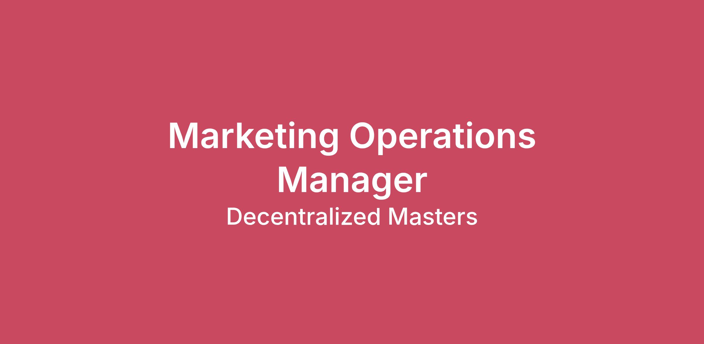 Who Are We?Decentralized Masters is at the forefront of DeFi education globally. In just two years, we have grown from a pioneering pair of co-founders to over 75 dedicated professionals. Today, we are recognized as one of the fastest-growing enterprises in the sector, with industry insiders predicting our evolution into a unicorn company by 2030. Operating on a bootstrapped model, we are on track to achieve an impressive $50 million in revenue this year alone.Our ImpactWhile our growth has been remarkable, we take even greater pride in the success of our clients. To date, we have empowered over 2,000 investors to break into the DeFi world. At Decentralized Masters, we don’t just offer education; we cultivate a powerhouse of knowledge combined with an engaging community, innovative technology, and a team of leading DeFi and blockchain experts. Our commitment is to deliver unparalleled resources designed for long-term success in the world of DeFi and Web3, ensuring our members not only safeguard but also enhance their financial future.Our VisionOur goal is to create the largest and most influential DeFi ecosystem the world has ever seen, starting with becoming the gold standard in DeFi education. This vision is ambitious, transformative, and poised to change the landscape of digital finance.Are You Ready?This is more than just a job; it’s an opportunity to shape the future of Web3 technology and education. Are you ready to be part of our vision to redefine what’s possible in DeFi and beyond? Apply below, and let’s explore this journey together.Check us out here: Decentralized Masters What will you be doing?The Marketing Operations Manager at Decentralized Masters will play a critical role in bridging strategy and execution. You will design, manage, and optimize our marketing infrastructure, processes, and analytics. You will ensure that our marketing team has the systems, data, and scalable processes necessary to run high-impact campaigns, measure performance, and continuously iterate.You will work cross-functionally with content, growth, product, community, engineering, and finance teams to support and elevate marketing outcomes across the journey (from awareness → acquisition → retention → advocacy) in a decentralized / blockchain environment.Key Responsibilities1. Marketing Technology & Toolstack Evaluate, implement, and manage marketing tools and platforms (e.g. CRM, marketing automation, analytics, CDP, attribution). Maintain integrations across systems (e.g. website, email, social, ad platforms, data warehouse, event tools) to ensure seamless data flow and tracking. Ensure data integrity, governance, and compliance (e.g. privacy, consent, data quality). Train marketing team members on tool usage, best practices, and workflows. 2. Process Design & Optimization Define, document, and refine marketing processes (campaign planning, lead nurturing, content scheduling, campaign reviews, etc.). Create scalable playbooks for recurring marketing initiatives (e.g. launch campaigns, drip campaigns, webinars, partnership marketing). Monitor operational bottlenecks and proactively address inefficiencies. Implement frameworks for campaign scheduling, handoffs, approvals, and cross-team coordination. 3. Campaign Execution Support Assist the marketing team in executing full-funnel campaigns (planning, set-up, QA, launch, monitoring, troubleshooting). Oversee campaign QA: tagging, tracking parameters, UTM setup, conversion mapping. Monitor daily campaign health (budgets, pacing, anomalies, channel-level performance). Support A/B testing, experimentation protocols, and optimization efforts. 4. Data, Analytics & Reporting Define key marketing metrics (KPIs, OKRs) and ensure alignment across teams. Build dashboards, regular reports, and data visualizations to track performance, ROI, and insights. Lead campaign post-mortems, deriving lessons and action items. Provide actionable insights to influence strategy, budget allocation, channel mix, and optimizations. 5. Cross-Functional Collaboration Collaborate with Product, Growth, Engineering, Community, and Finance teams to align on goals, metrics, dependencies, and execution timelines. Serve as liaison between marketing and analytics/data teams for custom tracking, modeling, and datasets. Support external agency or vendor partners (e.g. media, production, analytics consultants), ensuring they align with our toolchain and processes. 6. Governance, Compliance & Best Practices Enforce best practices around campaign tagging, naming conventions, data hygiene, and documentation. Ensure compliance with data privacy regulations (GDPR, CCPA, etc.) in marketing processes. Stay updated with industry trends, marketing ops standards, and new technologies, especially those relevant to decentralized / blockchain space What Do You Bring?Required Qualifications & Experience 4+ years of experience in marketing operations, marketing technology, or related roles (with proven track record). Hands-on experience with marketing automation platforms, CRMs, analytics stacks (e.g. HubSpot, Marketo, Pardot, Segment, GA, Looker, etc.). Strong technical aptitude — ability to understand integrations, data flow, APIs, and tracking implementations. Proven experience building dashboards, analyzing performance metrics, and providing strategic insights. Excellent process orientation, documentation skills, attention to detail, and ability to scale. Cross-functional collaboration skills — comfortable working with marketing, engineering, product, data, etc. Familiarity with compliance and data governance practices (privacy, consent, attribution, etc.). Self-starter, problem-solver mindset, and ability to thrive in ambiguity and fast-paced environments. Interest in or experience with blockchain, crypto, or Web3 ecosystems is a strong plus. Soft Skills & Traits Highly organized, with the ability to manage multiple projects and priorities simultaneously. Excellent communication sk