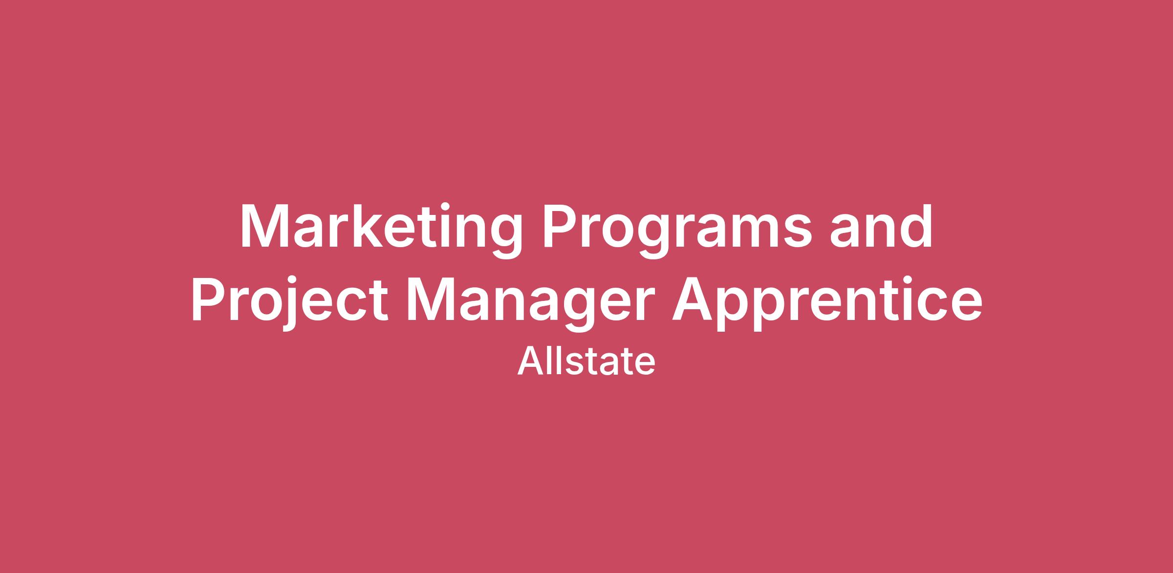 At Allstate, great things happen when our people work together to protect families and their belongings from life’s uncertainties. And for more than 90 years, our innovative drive has kept us a step ahead of our customers’ evolving needs. From advocating for seat belts, air bags and graduated driving laws, to being an industry leader in pricing sophistication, telematics, and, more recently, device and identity protection. Job DescriptionAbout the RoleIf you are someone who enjoys organizing ideas, bringing projects to life, and working with teams that want to make a real impact, this apprenticeship is for you. In this role, you will help support day to day project management, agency marketing programs, vendor coordination, and the execution of marketing strategies that reach thousands of Allstate agency owners across the country.You will work closely with Program Marketing, Field Marketing, Compliance, Legal, and Marketing Operations teams. Throughout the apprenticeship, you will learn how to take a marketing program from idea, to launch, to performance analysis. You will also learn how large organizations collaborate and how strong communication can influence business outcomes.This role is designed to help you build real skills, gain hands on experience, and make meaningful contributions to projects that support Allstate agencies.Candidates must be actively enrolled in a 2year community college and or technical program during the full duration of the apprenticeship program. Students are required to have a minimum GPA of 3.0 to apply. What You Will DoProgram and Project Management• Support marketing programs from the early idea stage through implementation and post‑launch analysis• Help manage timelines, deliverables, and communication across multiple teams• Learn how to track progress, identify blockers, and keep projects moving forwardAgency Engagement• Help support initiatives that encourage agency owners to participate in marketing programs• Be a connection point between internal marketing teams and agency owners to ensure alignmentVendor and Resource Coordination• Learn how to coordinate with external vendors that support our marketing programs• Support vendor‑related tasks, meetings, and documentationProcess Improvement• Spot opportunities to streamline workflows and improve program efficiency• Document best practices and help develop standards that support marketing operationsCross‑Functional Collaboration• Partner with Compliance, Legal, Operations, and Regional Marketing teams• Ensure that programs meet brand, regulatory, and operational requirementsWhat You Will LearnDuring this apprenticeship, you will build skills that set you up for a career in marketing, operations, or project management. This includes:• How to coordinate and execute marketing programs• How to manage multiple priorities in a fast‑paced environment• How to collaborate with experienced leaders across several departments• How to analyze program performance and contribute to decision‑making• How marketing and operations work together within a large corporate environmentWho You AreYou will be a strong fit for this role if you have:• Interest in project management and marketing• Familiarity with digital marketing or campaign execution• Strong organizational and time management skills• Comfort working in a collaborative environment• Willingness to learn and adapt• Experience with Microsoft Office tools (Excel and PowerPoint)• Interest in understanding how agency distribution models workWhy This Role MattersThe work you support will help create smoother marketing experiences for Allstate agency owners and ultimately contribute to stronger business performance. You will have the opportunity to take part in large projects, share ideas, and help shape programs that reach real customers and real agencies.SkillsJoining our team isn’t just a job — it’s an opportunity. One that takes your skills and pushes them to the next level. One that encourages you to challenge the status quo. One where you can shape the future of protection while supporting causes that mean the most to you. Joining our team means being part of something bigger – a winning team making a meaningful impact.Allstate generally does not sponsor individuals for employment-based visas for this position.Effective July 1, 2014, under Indiana House Enrolled Act (HEA) 1242, it is against public policy of the State of Indiana and a discriminatory practice for an employer to discriminate against a prospective employee on the basis of status as a veteran by refusing to employ an applicant on the basis that they are a veteran of the armed forces of the United States, a member of the Indiana National Guard or a member of a reserve component.For jobs in San Francisco, please click “here” for information regarding the San Francisco Fair Chance Ordinance.For jobs in Los Angeles, please click “here” for information regarding the Los Angeles Fair Chance Initiative for Hiring Ordinance.To view the “EEO Know Your Rights” poster click “here”. This poster provides information concerning the laws and procedures for filing complaints of violations of the laws with the Office of Federal Contract Compliance Programs.To view the FMLA poster, click “here”. This poster summarizing the major provisions of the Family and Medical Leave Act (FMLA) and telling employees how to file a complaint.It is the Company’s policy to employ the best qualified individuals available for all jobs. Therefore, any discriminatory action taken on account of an employee’s ancestry, age, color, disability, genetic information, gender, gender identity, gender expression, sexual and reproductive health decision, marital status, medical condition, military or veteran status, national origin, race (include traits historically associated with race, including, but not limited to, hair texture and protective hairstyles), 