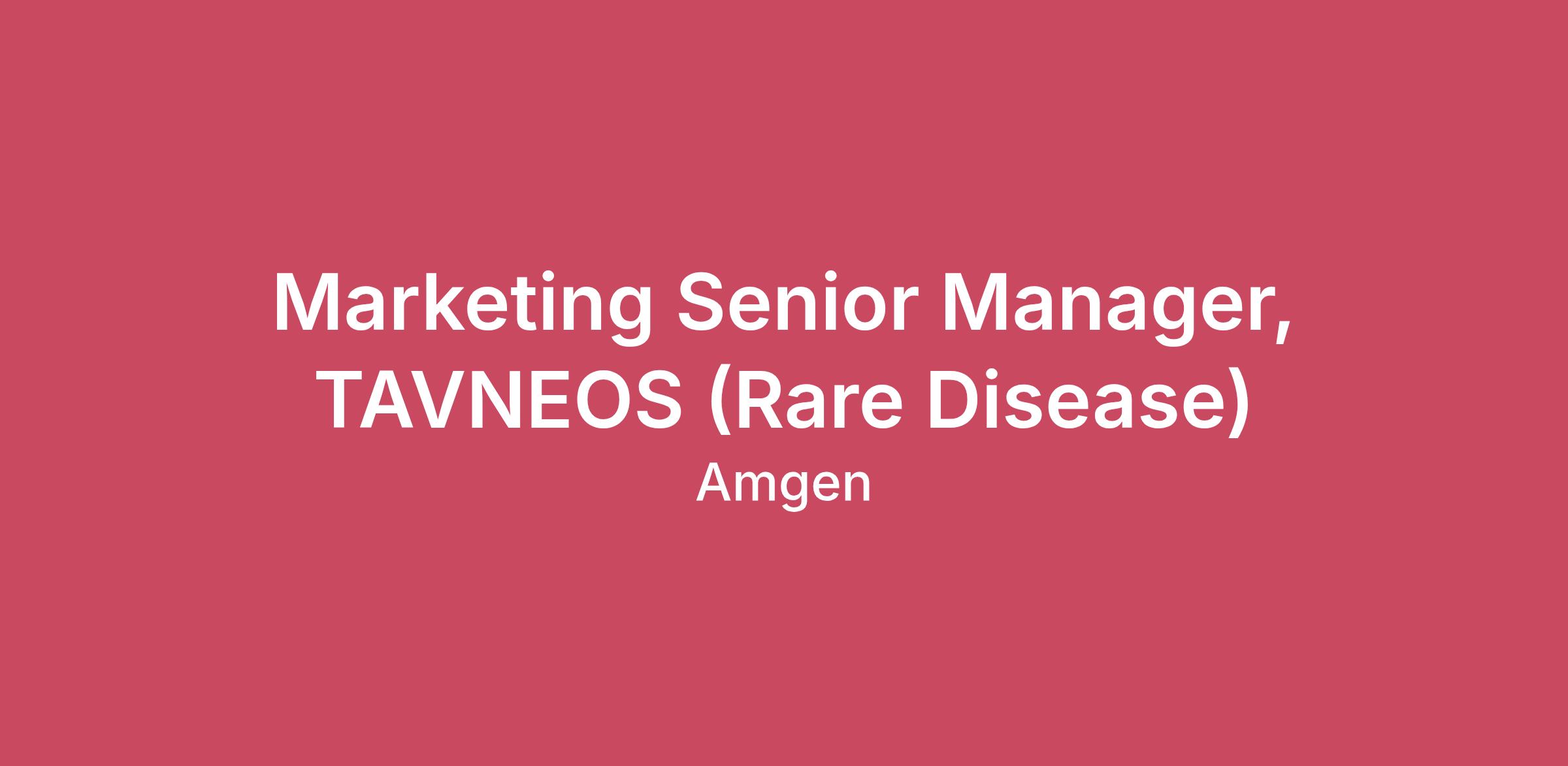 Career CategoryMarketingJob DescriptionJoin Amgen’s Mission of Serving Patients At Amgen, if you feel like you’re part of something bigger, it’s because you are. Our shared mission—to serve patients living with serious illnesses—drives all that we do. Since 1980, we’ve helped pioneer the world of biotech in our fight against the world’s toughest diseases. With our focus on four therapeutic areas –Oncology, Inflammation, General Medicine, and Rare Disease– we reach millions of patients each year. As a member of the Amgen team, you’ll help make a lasting impact on the lives of patients as we research, manufacture, and deliver innovative medicines to help people live longer, fuller happier lives. Our award-winning culture is collaborative, innovative, and science based. If you have a passion for challenges and the opportunities that lay within them, you’ll thrive as part of the Amgen team. Join us and transform the lives of patients while transforming your career. Marketing Senior Manager, Strategy & Brand Innovation - TAVNEOS What you will do The Marketing Senior Manager, Strategy & Brand Innovation will play a critical role in shaping and advancing data-driven tools and innovative go-to-market strategies for TAVNEOS. Reporting to the Marketing Director of Strategy & Brand Innovation, this role will lead the incubation, development, and scaling of advanced commercial platforms and pilots, while supporting cross-functional strategic planning and ensuring strong brand stewardship. This position is designed for a strategic marketer who thrives at the intersection of innovation, analytics, and execution, and who can translate complex data and emerging capabilities into meaningful commercial impact. Marketing Innovation & Data Strategy Support Lead, build upon, and evaluate data-driven platforms focused on rare disease patient identification that are integral to the brand’s go-to-market strategy, in close partnership with Field Sales, Data Science, CD&A, and other functional teams. Incubate, evaluate and scale strategic field-facing pilots, including virtual field teams and AI-enabled data leads Partner with the field leadership and the training team and to ensure pilot field teams demonstrate consistent, confident customer engagement Develop, refine, and deploy field-directed resources that clearly link brand strategy to as part of go-to-market pull-through Represent brand priorities in pilot measurement planning, ensuring outputs are actionable and aligned to brand strategy Drive cross-functional working groups to facilitate alignment, accountability, and timely delivery of key insights and outcomes Support case development for innovation initiatives, including defining objectives, success metrics, resource requirements, and value realization. Partner with leadership to embed new capabilities into brand working norms, including AI-based tools, data-enabled decision-making, and Amgen Brand Management guidelines. Strategic Planning Support Support the annual Cross-Functional Strategic Brand Plan process, ensuring deliverables are clearly defined, inputs are synthesized, and timelines are met. Help advance progress on longer-term Phase of Growth initiatives, providing structure, progress tracking, and strategic insights to support sustained brand growth. Translate strategic priorities into clear action plans and execution roadmaps across innovation and data-led initiatives. What we expect of you We are all different, yet we all use our unique contributions to serve patients. The professional we seek will come with these qualifications. Basic Qualifications: Doctorate degree and 2 years of commercial functions or project management experience Or Master’s degree and 4 years of commercial functions or project management experience Or Bachelor’s degree and 6 years of commercial functions or project management experience Or Associate’s degree and 10 years of commercial functions or project management experience Or High school diploma / GED and 12 years of commercial functions or project management experience Preferred Qualifications: 4+ years of experience in pharmaceutical, biotech, or healthcare commercial functions (e.g., marketing, sales, analytics), with exposure to brand management and work within regulated environments Strong strategic and analytical thinking skills, with the ability to translate data and insights into clear, actionable recommendations Demonstrated eye for business, connecting critical initiatives to commercial outcomes and long-term growth objectives Proven experience leading or contributing to data-driven marketing platforms, analytics initiatives, or innovation pilots from concept through execution Ability to incubate, test, and scale innovative go-to-market approaches, including AI-enabled or advanced analytics solutions Strong understanding of measurement frameworks, critical metrics, and performance evaluation in a commercial marketing context Experience partnering closely with Data Science, CD&A, Field Sales, Digital, and other cross-functional teams to drive impact Proven ability to influence collaborators and lead cross-functional initiatives without direct authority Demonstrated success managing complex, multi-workstream initiatives in fast-paced, evolving environments Strong organizational skills with the ability to manage multiple priorities and deliver high-quality outcomes Excellent written and verbal communication skills, with experience preparing materials for senior leadership audiences Comfortable operating in ambiguous and rapidly changing environments, balancing experimentation with executional rigor What you can expect of us As we work to develop treatments that take care of others, we also work to care for your professional and personal growth and well-being. From our competitive benefits to our collaborative culture, we’ll support your journey every step of the way. The expected annual salary range for this role in the U.S