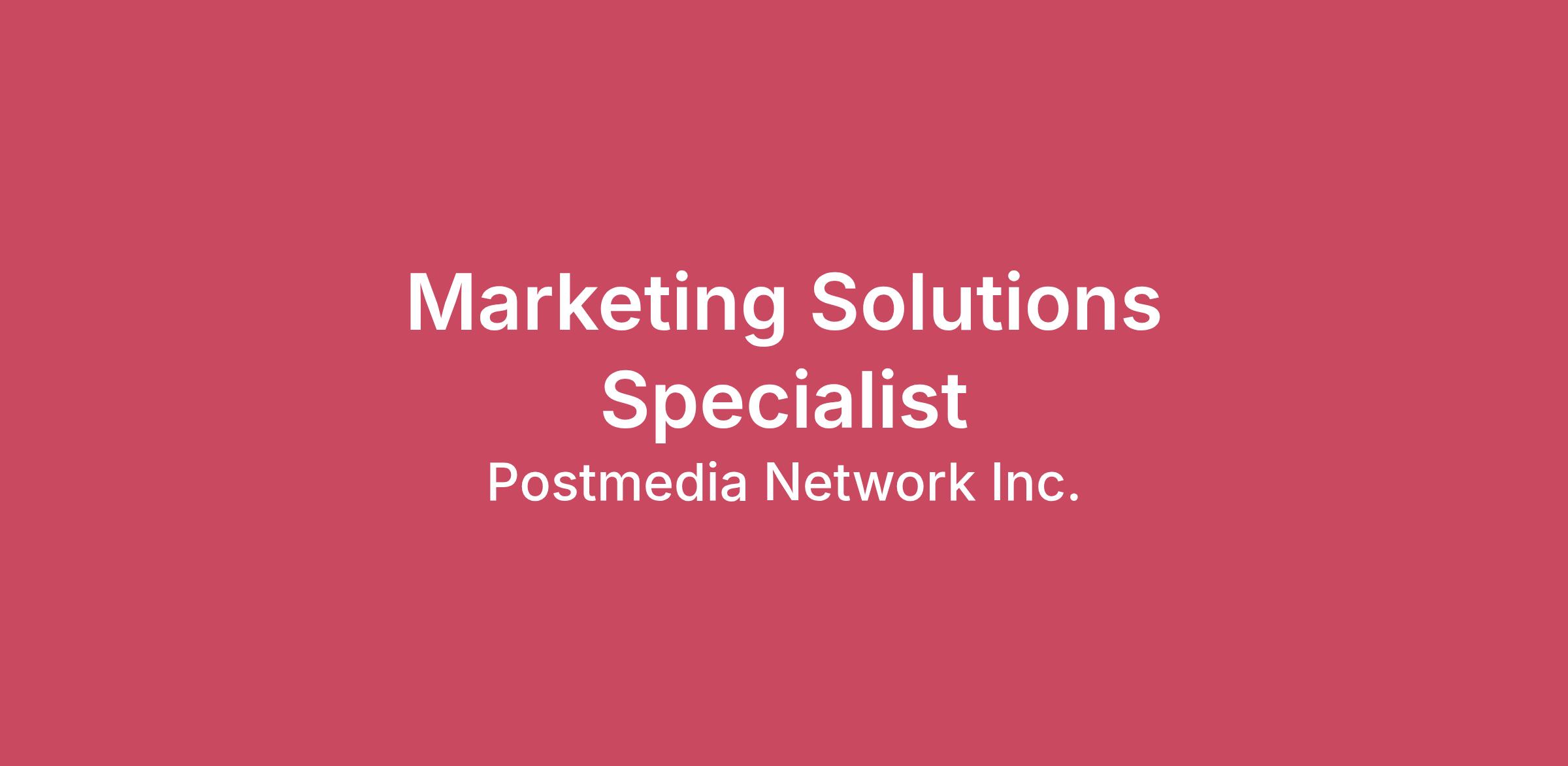 Position: Marketing Solutions Specialist Position Type: Full-time, Permanent (Existing Vacancy) Location: Toronto, ON (Remote) The Company: Postmedia is a Canadian news media company representing more than 110 brands across multiple print, online and mobile platforms. Award-winning journalists and innovative product development teams bring engaging content to millions of people every week whenever and wherever they want it. This exceptional content, reach and scope offers advertisers and marketers compelling solutions to effectively reach target audiences. We are always on the lookout for talented individuals to join our team. The Opportunity: Postmedia is seeking a highly motivated and detail-oriented professional to fill the full-time position of Marketing Solutions Specialist. We are an expanding team that actively promotes a culture of collaboration in everything we undertake. The ideal candidate is a highly experienced digital marketing professional, a Bachelors degree in Marketing or relevant field and minimum of 3 years of experience at an agency. You have excellent knowledge of analytics tools and campaign evaluation metrics along with exceptional communication and presentation skills. What you’ll do: Develop and lead integrated digital marketing strategies that go the distance, connecting audience insight, creativity, and performance to exceed client business goals. Bring technical depth and marketing intuition to every conversation, complementing our Account Executive team with data-driven thinking and solution-oriented recommendations that deliver long-term impact. Be the strategic voice clients trust, building confidence through proactive communication, clear direction, and exceptional execution across all business lines. Act as a subject matter expert and thought leader, providing the insight and perspective that inspire clients and strengthen Postmedia’s position as a digital marketing authority. Collaborate cross-functionally with a multitude of teams to translate client objectives into cohesive, measurable campaign strategies. Craft and deliver compelling presentations that bring strategies to life, combining audience research, analytics, and creative vision to clearly articulate the “why” behind every recommendation. Stay ahead of the curve! Continually expanding your knowledge of emerging platforms, tools, and industry trends to keep our strategies innovative Who you are: A strategic marketer and storyteller who can see the big picture, translating complex business objectives into data-driven, creative, and integrated marketing solutions. A natural collaborator who builds trust across teams and clients, fostering alignment through clear communication and a solutions-first mindset. Digitally fluent with deep knowledge of platforms such as Meta, Google (Search, Display, Video, Shopping, Analytics), LinkedIn, Spotify, and SEO. Always curious about what’s next in the evolving media landscape! A performance-minded strategist who knows how to balance creativity with analytics. You can interpret results, identify trends, and articulate ROI with confidence. A leader at heart, known for elevating those around you - coaching, inspiring creative thinking, and setting a high bar for quality and innovation. Adaptable and proactive in fast-paced environments, able to manage multiple priorities without losing sight of the client vision or strategic goal. A continuous learner who embraces change, innovation, and growth, always pushing for better outcomes, sharper insights, and stronger campaigns. Embraces a strong team dynamic, working collaboratively alongside industry leaders who are passionate about driving success for our clients and each other. Compensation: Employment offers presented to the selected candidate are based on a combination of qualifications, experience, responsibilities of the role and the candidate's location. Base Salary: $45,000-$65,000 + VariableWe thank in advance all applicants for their interest, however only those candidates under consideration will be contacted. Only candidates legally eligible to work in Canada will be considered. No phone calls or agencies please.Postmedia Network Inc. is committed to providing accommodations for people with disabilities in all areas of the hiring process. If you require accommodation during the hiring process, please make your needs known in advance. Accommodation requests will be provided on an individual basis.Postmedia Network Inc. is committed to employment equity and an inclusive barrier-free selection process and work environment. Postmedia Network Inc. encourages applications from women, indigenous peoples, persons with disabilities and members of visible minorities.