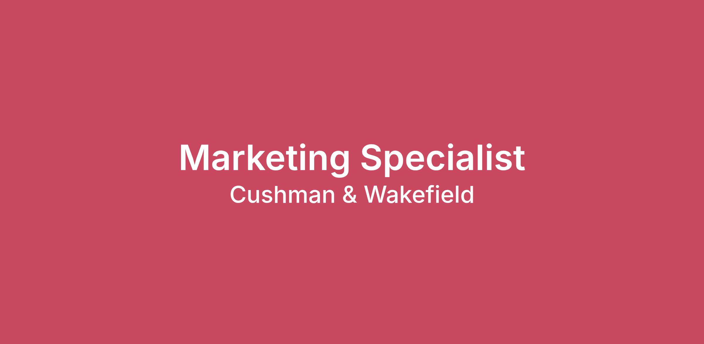 Job TitleMarketing SpecialistJob Description SummaryThe Marketing Specialist is responsible for business development pursuits from start to finish. This includes managing and assisting with the overall coordination, collaboration and preparation of marketing and business development content, collateral, proposals and presentations. This position is virtual and works with teammates and business partners across the Americas (U.S. & Canada) business.Job DescriptionResponsibilities:Lead and manage business development process for proposals and presentations from commencement to material completionInterface with business leaders and fee earners throughout the process as well as partner with graphic design teams to produce highly compelling sales support toolsFind existing content and edit, as applicable, to tailor to pursuitsWrite original content where required, using business knowledge and working with subject matter expertsCoordinate draft reviews and updates, make edits and updates on proposals and presentationsManage stakeholder expectations and communicate with entire project team throughout process to keep milestones on scheduleElevate issues to problem solve in real timeDeliver final, clean pitch and presentation contentAssist in coaching and providing feedback to presentation delivery teams in rehearsalsEnsure best practice sharing and adoption across pitch and proposal collateralSupport collection of post pitch feedback and incorporate into future effortsUse tools to input and track pursuit data to enable comprehensive reporting and decision supportQualifications:Bachelor's degree in journalism, English, communications, marketing or public relations3+ years of experience in B2B proposal writing, pitch development, business development marketing or comparable experienceExceptional written and oral communication skillsStrong time management, organizational and prioritization skills. Must have the ability to balance multiple priorities and projects simultaneouslyStrong stakeholder management skillsSelf-motivated approach with the ability to take initiative but works well in group environmentAn eagerness to learn new skills and subjectsUnderstanding of the commercial real estate industry a plusProficiency in MS Office Suite (PowerPoint and Word)Cushman & Wakefield also provides eligible employees with an opportunity to enroll in a variety of benefit programs, generally including health, vision, and dental insurance, flexible spending accounts, health savings accounts, retirement savings plans, life, and disability insurance programs, and paid and unpaid time away from work. In addition to a comprehensive benefits package, Cushman and Wakefield provide eligible employees with competitive pay, which may vary depending on eligibility factors such as geographic location, date of hire, total hours worked, job type, business line, and applicability of collective bargaining agreements.The compensation that will be offered to the successful candidate will depend on factors such as whether the position is covered by a collective bargaining agreement, the geographic area in which the work will be performed, market pay rates in that area, and the candidate’s experience and qualifications.The company will not pay less than minimum wage for this role.The compensation for the position is: $ 70,550.00 - $83,000.00Cushman & Wakefield is an Equal Opportunity employer to all protected groups, including protected veterans and individuals with disabilities. Discrimination of any type will not be tolerated.In compliance with the Americans with Disabilities Act Amendments Act (ADAAA), if you have a disability and would like to request an accommodation in order to apply for a position at Cushman & Wakefield, please call the ADA line at 1-888-365-5406 or email HRServices@cushwake.com. Please refer to the job title and job location when you contact us.INCO: “Cushman & Wakefield”