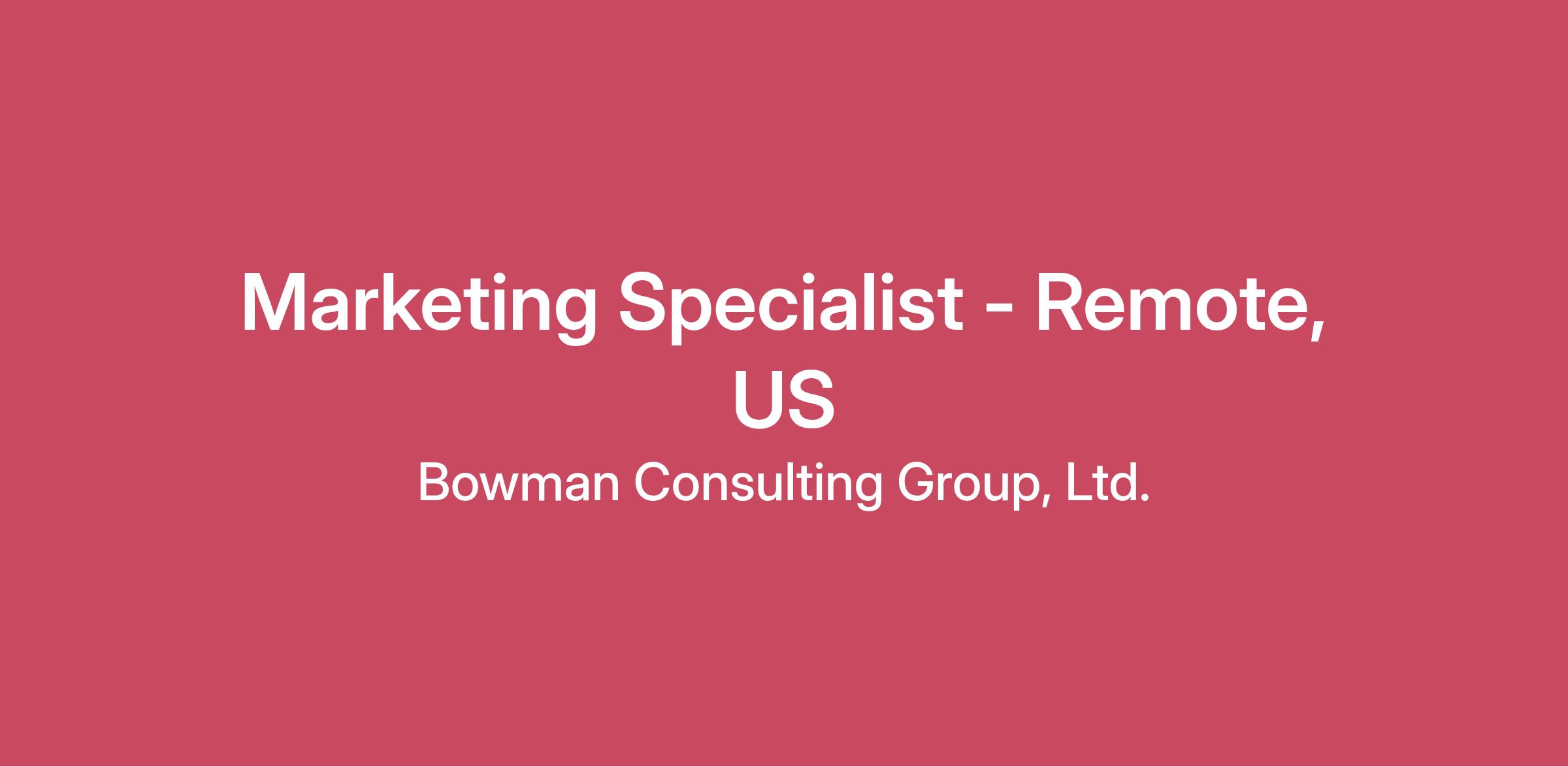 Short DescriptionBowman has an opportunity for a Marketing Specialist to join our team remotely. Bowman is a growing, dynamic and nationwide engineering firm that is seeking an experienced and talented Marketing Specialist to support company-wide marketing efforts. In this position, you will enjoy a fast-paced, creative and collaborative team environment where you’ll be expected to exercise strong organizational and problem-solving skills to effectively manage multiple priorities and consistently meet deadlines. As a vital part of our sales efforts, you will work directly with subject matter experts at all levels and will be required to demonstrate strong communication skills and a high degree of professionalism to successfully complete detailed proposal submissions. You would be joining a nationwide team of marketers and helping to expand our growth initiatives all while enjoying comprehensive benefits including remote working (in office/hybrid/remote options available) and flexible PTO. Find out why it’s Better with Bowman. At Bowman, we believe in creating opportunities for aspiring people to thrive and achieve ambitious goals. That's why a career at Bowman is more than a job. It is an opportunity to be part of a diverse and engaged community of professionals, to be treated as a respected and valued member of a motivated team and to be empowered to do exceptional work that advances the best interest of everyone involved. We recognize the importance of creating a work environment that is both rewarding to our employees and supportive of our unwavering commitment to provide unparalleled service to our clients. PurposeIntermediate individual contributor and proposal producer who provides support in the execution of the company’s sales and marketing initiatives. ResponsibilitiesLeadership and DirectionPerform work under limited supervision requiring the need to exercise independent judgement and discretion on a regular basis.At the Operational and Company LevelWork collaboratively with cross functional groups to produce sales and marketing collateral to support business initiatives. Maintain up-to-date knowledge of key organizational project initiatives and industry competitors.Do the Work Preparation of proposals in response to RFP requests, qualifications and teaming opportunity materials for both public works and private development projects managing the process from content generation through to debriefing.Leverage a whole-brain approach to marketing—balancing strategic thinking with creative execution—to develop compelling, visually engaging content that resonates with target audiences.Apply graphic design skills/knowledge to elevate visual storytelling and mentor junior staff in design principles, branding consistency and layout best practices.Assist business development/project teams with prequalification and lead tracking efforts.Prepare presentations and assist with interview preparation.Produce marketing and communications collateral including brochures, project profiles, team resumes, etc.Create visually appealing graphics in support of proposal preparation and corporate initiatives, as needed.Maintain efficient marketing processes, record keeping systems and historical information per department standards.Assists in management and integrity of company project and resume database.Contribute to the development and maintenance of graphics library.May assist in coordinating and potentially participating in industry, tradeshow and recruiting events.Research and compile data on clients, communities and/or markets to support strategy development.Complete day-to-day marketing tasks, projects and activities, as requested. Success Metrics and CompetenciesStrong time management, self-reliance and ability to operate independently with limited direction.Strong organizational and problem-solving skills with the ability to pivot in a fast-paced environment while effectively managing multiple priorities.Strong sense of urgency in responding to stakeholders.Demonstrated ability to think proactively, exercise sound judgment and resourcefulness.Strong work ethic, a positive attitude, and a willingness to learn and grow.Exemplify the Bowman brand internally and externally.Proven ability to synthesize information into professional marketing communications.Work collaboratively with cross functional groups. QualificationsMinimum of two (2) years professional services marketing experience with emphasis and clear understanding of proposal development. (AEC preferred)Associate or bachelor’s degree in marketing, communications, or related field preferred. Commensurate work experience also considered.Proficient in Adobe Creative Suite (InDesign, Illustrator, and Photoshop) and Microsoft Office Suite (Work, Excel, and PowerPoint).Excellent writing, editing and communication skills.Strong organizational and problem-solving skills.Strong graphic design and layout capabilities.Flexibility to work as needed to meet deadlines. About BowmanAre you ready to build a career that makes a lasting impact? At Bowman, our people are at the center of everything we do. We’re committed to creating an environment where employees can thrive both personally and professionally, while helping to shape the infrastructure of tomorrow. A career at Bowman means being part of a collaborative, forward-thinking organization where innovation, inclusion, and growth are encouraged at every level. We offer competitive compensation, a supportive work environment, and benefits designed to help our employees succeed. Salary and eligible variable compensation (if any) commensurate with experience. Range $65,000-$80,000 per year and includes a comprehensive benefits package. Our comprehensive benefits package includes:Medical, dental, vision, life, and disability insurance401(k) retirement savings plan with company matchPaid time off, sick leave, and paid holidaysTuition reimbursement and professional development supportDiscreti