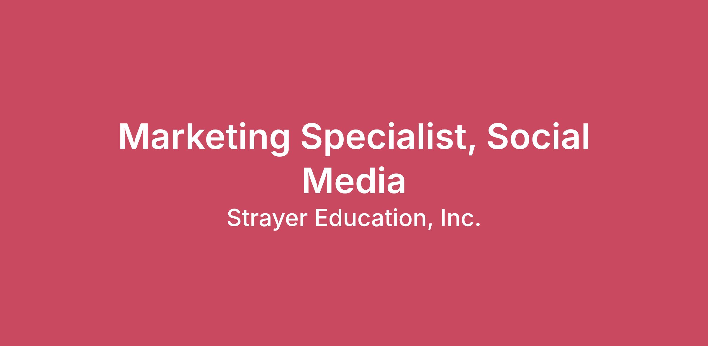 Strategic Education, Inc. is looking for a Marketing Specialist, Social Media to join our US Higher Education Brand Team. The ideal candidate will have a passion for social media, user engagement and community development through social channels. They will work with the Marketing Manager, Social Media to manage a brand’s online reputation by collaborating with internal and external partners in an effort to reach business objectives.Essential Duties and Responsibilities:Community ManagementLead the day-to-day community management of each brand’s social media platforms with support from agency. This includes monitoring conversations on paid and organic social content, about or related to the university questions externally and privately, and escalating issues as needed.Partner with internal teams including legal, PR, academics, enrollment, product marketing, and more to develop appropriate responses, resolve issues, answer questions, and escalate concerns that arise on social media channels.Leverage social listening tools to regularly to monitor conversation on external channels about the university and flag emerging opportunities or issues.Keep a pulse on positive mentions and engagements to leverage impactful UGC moments for content strategy.Social Strategy ExecutionSupport the Marketing Manager, Social Media in the creative development of the university’s broader organic social media strategy, including partnering with external creative agency.Manage the crowd sourcing strategy for obtaining student and alumni testimonials, and faculty voices to support overall social content initiatives.Support testimonial approval process through outreach to students/alumni and thorough vetting through internal and external channelsMonitor social trends and proactively pitch ideas for timely, relevant content.Support in publishing, boosting, and measuring performance of social content as needed.Job Skills: Knowledge of social media (Facebook, Instagram, LinkedIn, YouTube and TikTok).Demonstrated communication skills and ability to problem solve and partner across the organization.Displays autonomy, independent judgement, and decision making.Strong organizational skills and ability to manage and prioritize multiple projects based on business needs.Work Experience:Requires 1-3+ years of marketing and/or social media experience or subject matter expertise. Other relevant work experience may be accepted in lieu of subject matter expertise. Experience in community management and audience engagement, including issue resolution and cross-team collaboration.Education:Bachelors DegreeOther:Must be able to travel occasionally should a business need arise. For most roles travel would not be common. Travel may involve plane, car or metro. In accordance with ADA policies, reasonable accommodations regarding travel limitations can be provided. Travel will be more common for roles such as Account Executives (25 - 50%), senior leaders (10 – 20%) or Capella Core Faculty (5 – 10%). Ability to work onsite in Corporate or Campus location (in a typical office environment) may be required based on role. If so, this would include being mobile within the office, including movement from floor-to-floor using elevators or stairs.If offsite or hybrid role, must have access to work in setting which enables meeting all requirements of the role (including privacy, reliable internet access, phone, ability to video conference, etc.) at a remote location.Faculty and Federal Work Study roles require access to work in setting which enables meeting all requirements of the role (including computer, privacy, reliable internet access, phone, ability to video conference, etc.) at a remote location.This role may require lifting, however reasonable accommodations will be provided in accordance with our ADA policies.Must be able to meet critical thinking and problem solving aspects aligned to job duties, as well as effectively communicating with co-workers.Must be able to work more than 40 hours per week when business needs warrant. Accommodations related to schedule may be considered. Able to access information using a computer.Other essential functions and marginal job functions are subject to modification.SEI offers a comprehensive package of benefits to employees scheduled 30 hours or more per week. In addition to medical, dental, vision, life and disability plans, SEI employees may take advantage of well-being incentives, parental leave, paid time off, certain paid holidays, tax saving accounts (FSA, HSA), 401(k) retirement benefit, Employee Stock Purchase Plan, tuition assistance as well as entertainment and retail discounts. Non-exempt employees are eligible for overtime pay, if applicable.Careers - Our Benefits, Strategic Education, IncSEI is an equal opportunity employer committed to fostering an inclusive and collaborative culture where individuals can grow their careers and contribute fully. We strive to attract talent with broad experiences, skills and perspectives. We welcome applications from all. While it is not typical for an individual to be hired at or near the top end of the pay range at SEI, we offer a competitive salary. The actual base pay offered to the successful candidate may vary depending on multiple factors including, but not limited to, job-related knowledge/skills, experience, business needs, geographical location, and internal pay equity. Our Talent Acquisition Team is ready to discuss your interest in joining SEI. The expected salary range for this position is below.$49,600.00 - $74,400.00 - SalaryIf you require reasonable accommodations to complete our application process, please contact our Human Resources Department at Careers@strategiced.com.