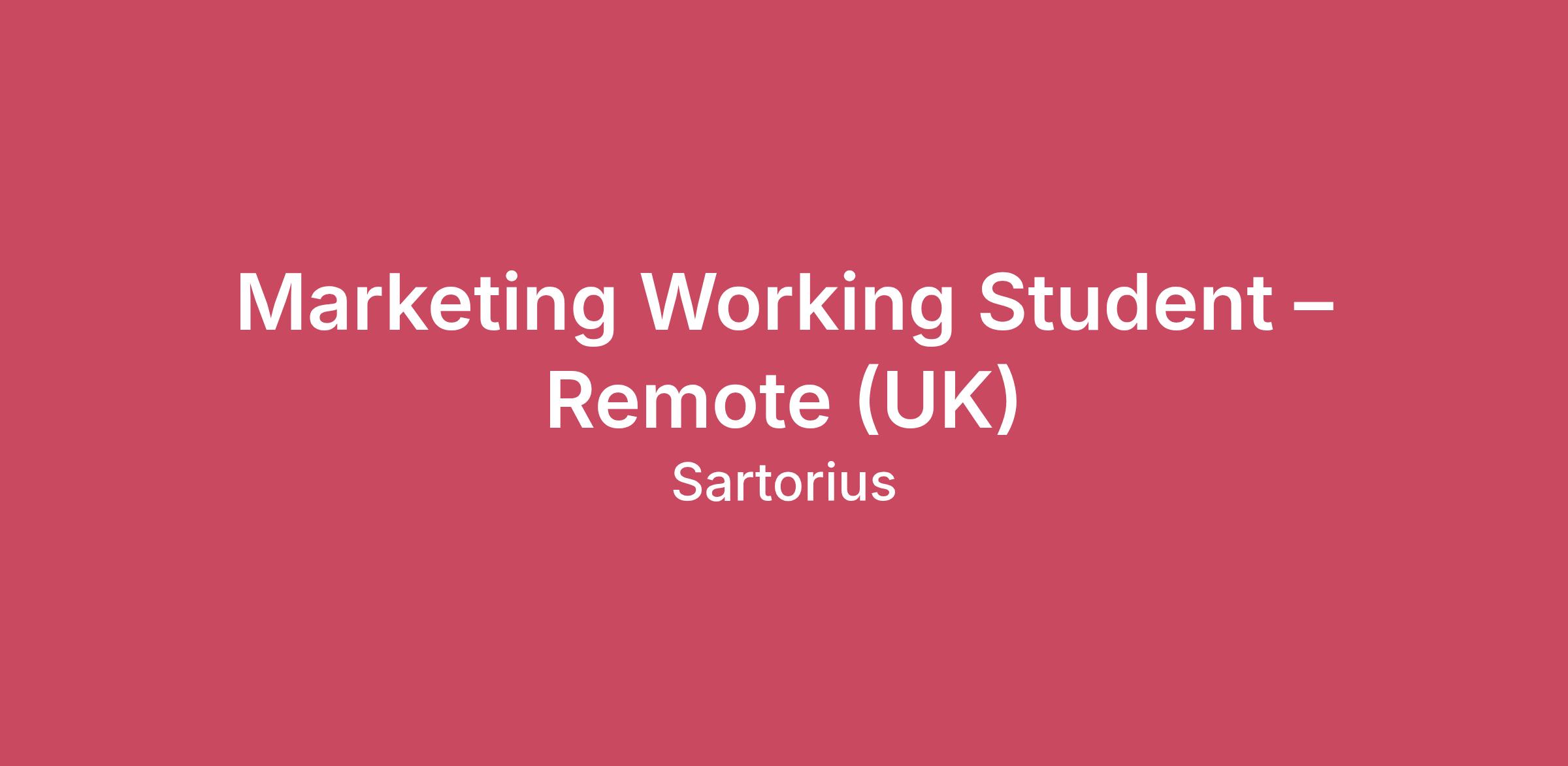 We are looking for a Working Student to join our Marketing team. You will be based from home and working 20 hours per week.We are looking for a Marketing Working Student to support the BioAnalytics department at Sartorius, being based from home. As a working student, you benefit in two ways: you gain important work experience and earn some extra money alongside your studies. With a working week of 20 hours, you can continue to concentrate on your studies. In BioA, we are developing and manufacturing a range of high – end laboratory instrumentation for biological laboratories.In this role, you will support marketing colleagues within the global team and learn tricks of the trade from our experts. This role is ideal for someone, who is currently in the midst of their academic journey. In order to apply candidates needs to have at least 1 year left on their study. This role is perfect for students eager to apply their knowledge in a practical setting while continuing their education.The team consists of 5 professionals, and we are looking forward to shaping the future with you. This position is available part – time and based remotely in the United Kingdom. Occasional travel to meetings with the team is possibleGrow with us – Your Responsibilities Providing briefing documents, content and images for new web page developmentCoordinating/supporting digital promotional activities, email campaigns, webinars and other third-party activitiesSupporting with video/teaser creation – storyboards, operational planning, studio bookingSummarizing content for monthly marketing newslettersMonitoring website landing pages for outdated content and potential refreshSupporting Campaign Managers and Marketing Specialists with marketing projects such as: gated asset pages redesign/update initiatives, product integration supportWhat will convince us Master or PhD student in Biology, Bioengineering, Biotechnology or Life ScienceStrong communication and written skills in EnglishAccuracy and strong attention to detailInterpersonal skills to be able to work in an international teamWillingness to learn and to be flexible when taking over tasks on short noticeAbility to work self-driven and with a high level of self-motivationIn order to commence working with us, the successful candidate must have the right to work in the UK.What we offer As a growing global life science company, stock listed on the German TecDAX, Sartorius offers a wide range of benefits: Personal and Professional Development: Mentoring, leadership programs, internal seminar offeringsWork-life Balance: Remote options, flexible work schedulesMaking an impact right from the start: Comprehensive onboarding, including a virtual online platform – even before joiningWelcoming Culture: Mutual support, team spirit and international collaboration; communities on numerous topics such as coaching, agile working and businesswomen networkBenefitsAttractive Working Conditions20 hours working week25 days annual leave plus public holidays (pro-rata)Annual option to buy, sell or carry over annual leaveHealth & WellbeingCompetitive benefits package, including:Group Life AssurancePlanning Ahead For Your FutureGroup Personal Pension PlanAbout Sartorius Sartorius is part of the solution in the fight against cancer, dementia, and many other diseases. Our technologies help translate scientific discoveries into real-world medicine faster, so that new therapeutics can reach patients worldwide. We look for ambitious team players and creative minds, who want to contribute to this goal and advance their careers in a dynamic global environment.Join our global team and become part of the solution. We are looking forward to receiving your application. www.sartorius.com/careers