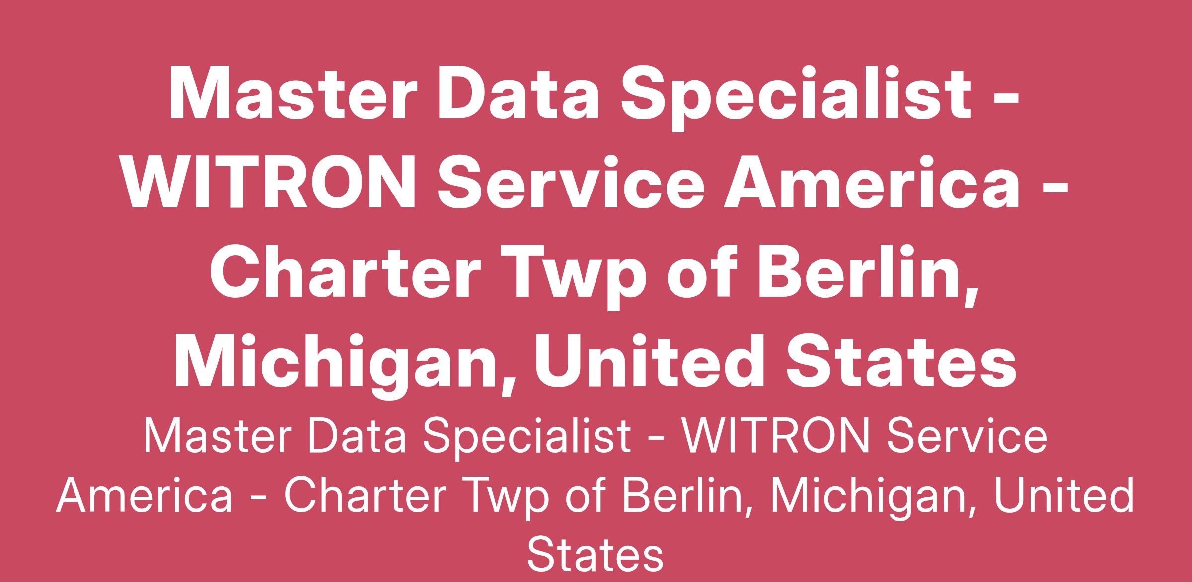 Master Data Specialist - WITRON Service America - Charter Twp of Berlin, Michigan, United States