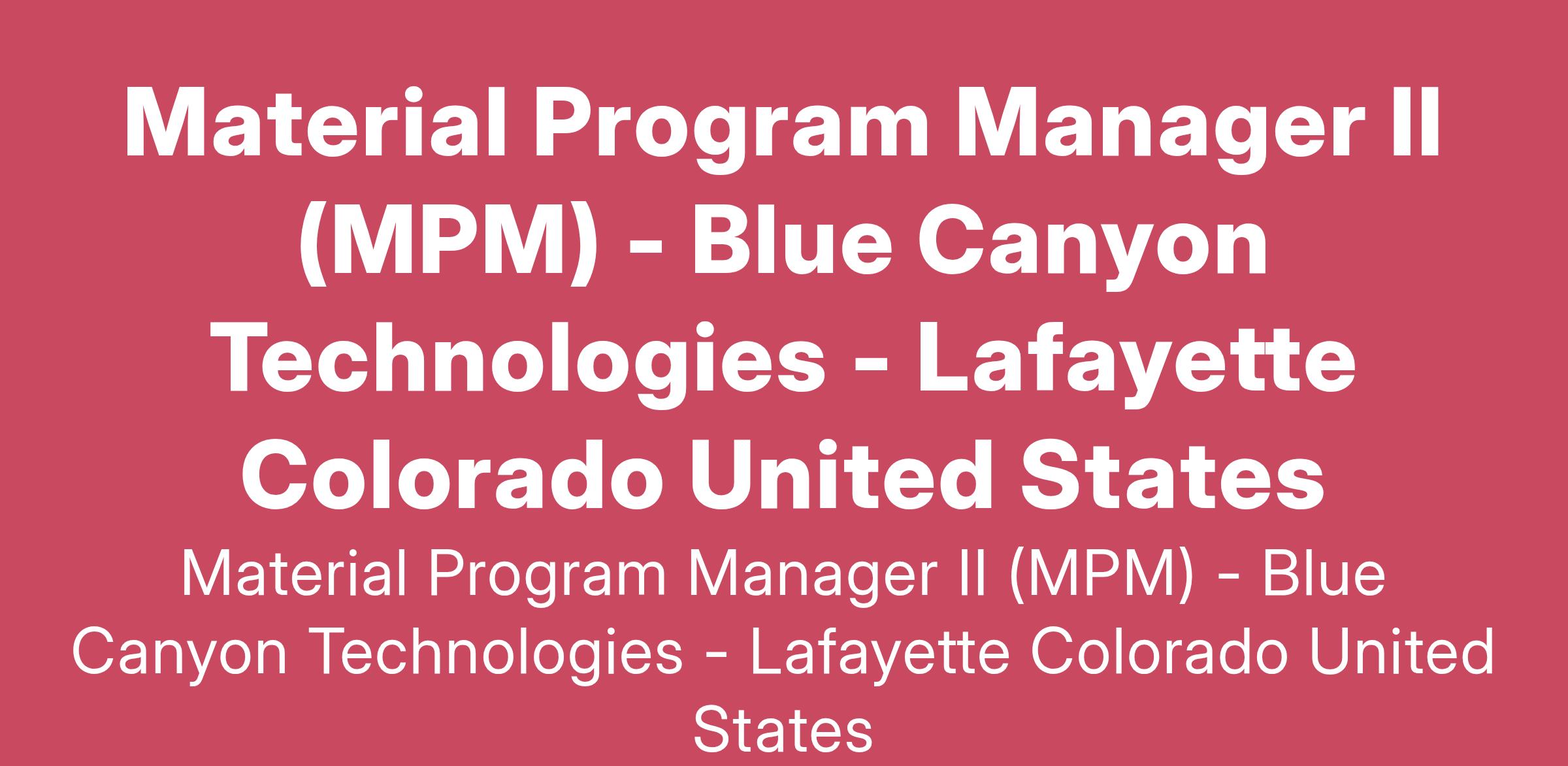 Title: Material Program Manager (MPM)