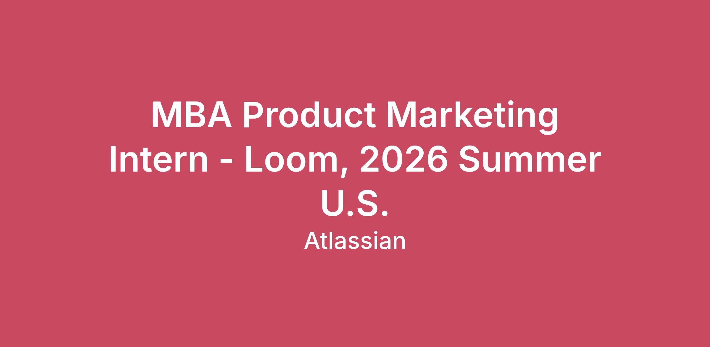 Overview Working at AtlassianAtlassians have the flexibility to work where they can collaborate most effectively with their team, whether at home, one of our global offices, or both. As a distributed-first company, all interviews are conducted virtually. We hire in any country where we have a legal entity. Learn how we work at go.atlassian.com/distributed. Your Future OrgAtlassian’s Intern program combines hands-on technical training, professional growth opportunities, dedicated mentorship, and strong social connections. This holistic approach empowers students to hit the ground running and sets them up for a successful and impactful career at Atlassian! This position is not eligible for F1 and J1 students. It is not available for any work sponsorship. Our paid internship program runs for 12 weeks between May-August or June- September 2026. Your Future TeamLoom is the video communication platform for work, and now part of the Atlassian family. As a Product Marketing MBA Intern focused on Loom, you’ll be at the forefront of shaping how teams communicate and collaborate through video. You will collaborate with experienced marketers to support go-to-market strategy development and campaign execution. This is a unique opportunity to gain hands-on experience in competitive research, product launches, community/social activations, and sales enablement – while making a tangible impact on how teams adopt and realize value with Loom. Responsibilities Responsibilities Lead a project to expand our library of customers' real-world Loom use cases, with the opportunity to own a campaign launch to promote it. Conduct market research and analyze competitive offerings to identify opportunities for Loom to differentiate. Support Senior PMMs with developing sales enablement programs that equip our sellers with the right messages and product information to lead customer adoption of Loom. Contribute to marketing strategies and campaigns, conduct applicable research, and have a seat at the table with the rest of our team. Help analyze marketing campaign or program performance, and provide insights for improvement. Qualifications Minimum Qualifications Able to commit to a 12-week full-time (40hrs/week) program during Summer 2026 Currently enrolled full-time in an MBA degree program and returning to the program after the completion of the internship, graduating by June 2027 Passionate about marketing, aware of key marketing frameworks, and interested in the B2B SaaS landscape Able to analyze complex problems and propose effective solutions, with strong critical thinking skills Are a collaborative team player who thrives in cross-functional environments and values diverse perspectives Have a self-starter mentality with a proactive approach to learning and problem-solving Preferred Qualifications Familiarity with Loom (or video communication tools for work) is a strong plus, but not a requirement. Experience working with customer-facing teams is a nice-to-have, but not a requirement. Experience leading or supporting marketing initiatives that leverage video to drive engagement and adoption. CompensationAt Atlassian, we strive to design equitable, explainable, and competitive compensation programs. To support this goal, the baseline of our range is higher than that of the typical market range, but in turn we expect to hire most candidates near this baseline. Base pay within the range is ultimately determined by a candidate's skills, expertise, or experience. In the United States, we have three geographic pay zones. For this role, our current base pay ranges for new hires in each zone are: Zone A: $35/hr - $40/hr Zone B: $32/hr - $36/hr Zone C: $29/hr - $33/hr This role may also be eligible for benefits, bonuses, commissions, and equity. Please visit go.atlassian.com/payzones for more information on which locations are included in each of our geographic pay zones. However, please confirm the zone for your specific location with your recruiter. Benefits & PerksAtlassian offers a wide range of perks and benefits designed to support you, your family and to help you engage with your local community. Our offerings include health and wellbeing resources, paid volunteer days, and so much more. To learn more, visit https://www.atlassian.com/company/careers/earlycareers About AtlassianAt Atlassian, we're motivated by a common goal: to unleash the potential of every team. Our software products help teams all over the planet and our solutions are designed for all types of work. Team collaboration through our tools makes what may be impossible alone, possible together. We believe that the unique contributions of all Atlassians create our success. To ensure that our products and culture continue to incorporate everyone's perspectives and experience, we never discriminate based on race, religion, national origin, gender identity or expression, sexual orientation, age, or marital, veteran, or disability status. All your information will be kept confidential according to EEO guidelines. To provide you the best experience, we can support with accommodations or adjustments at any stage of the recruitment process. Simply inform our Recruitment team during your conversation with them. To learn more about our culture and hiring process, visit go.atlassian.com/crh.