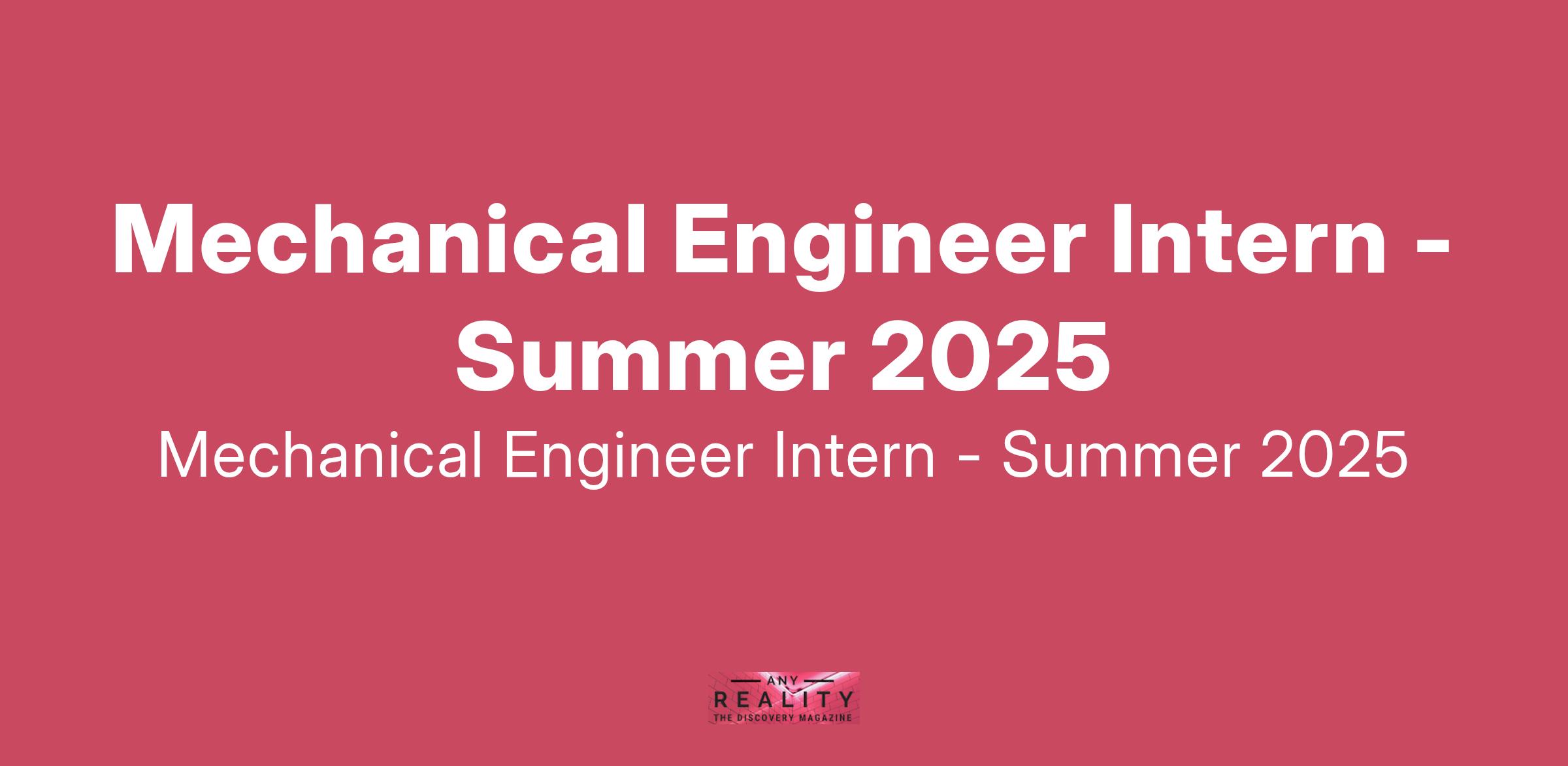 Mechanical Engineer Intern - Summer 2025