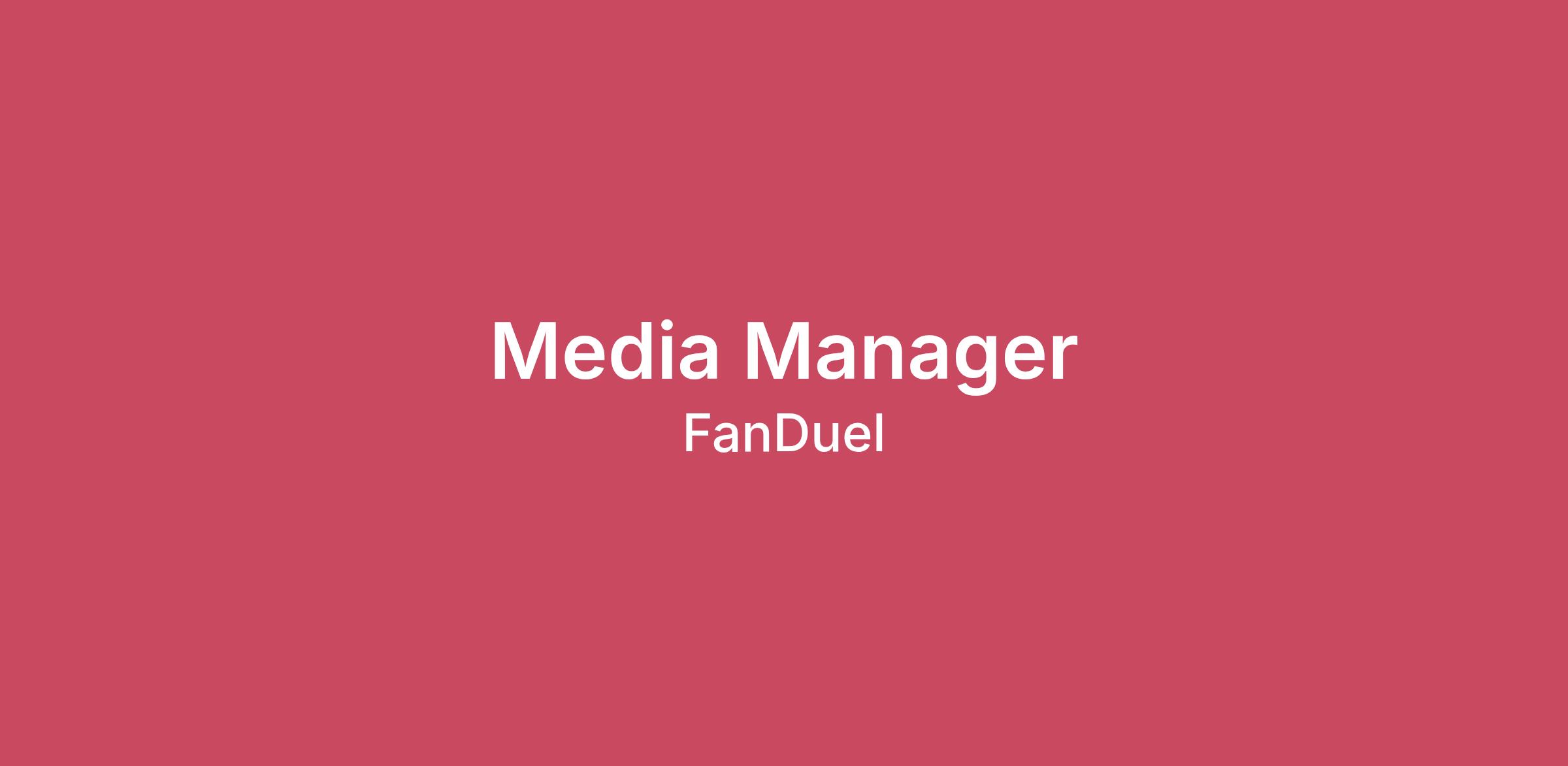 The Media and Partnership team at FanDuel is looking for a Media Manger to help design, track, negotiate and oversee the media planning for the FanDuel Predicts product. The goal of this role is to assist in driving acquisition and ultimately significant revenue growth through the management of the media planning discipline. Media channels under the purview of the role include TV, OTT/Streaming, Audio both terrestrial Radio and Digital Audio, Direct Mail, and OOH/dOOH. The ideal candidate will know how to develop and navigate key relationships with both agency partners and key vendors to guide the media planning process.