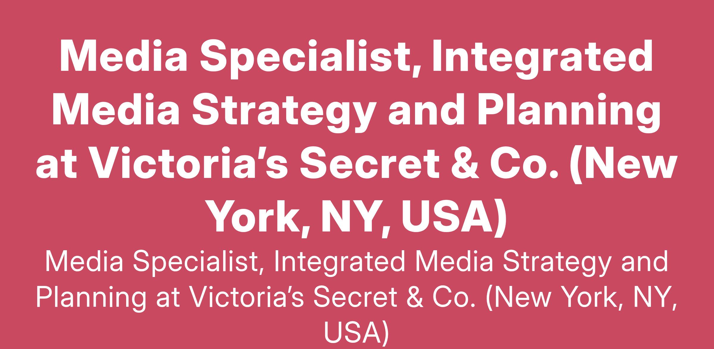 Media Specialist, Integrated Media Strategy and Planning at Victoria’s Secret & Co. (New York, NY, USA)