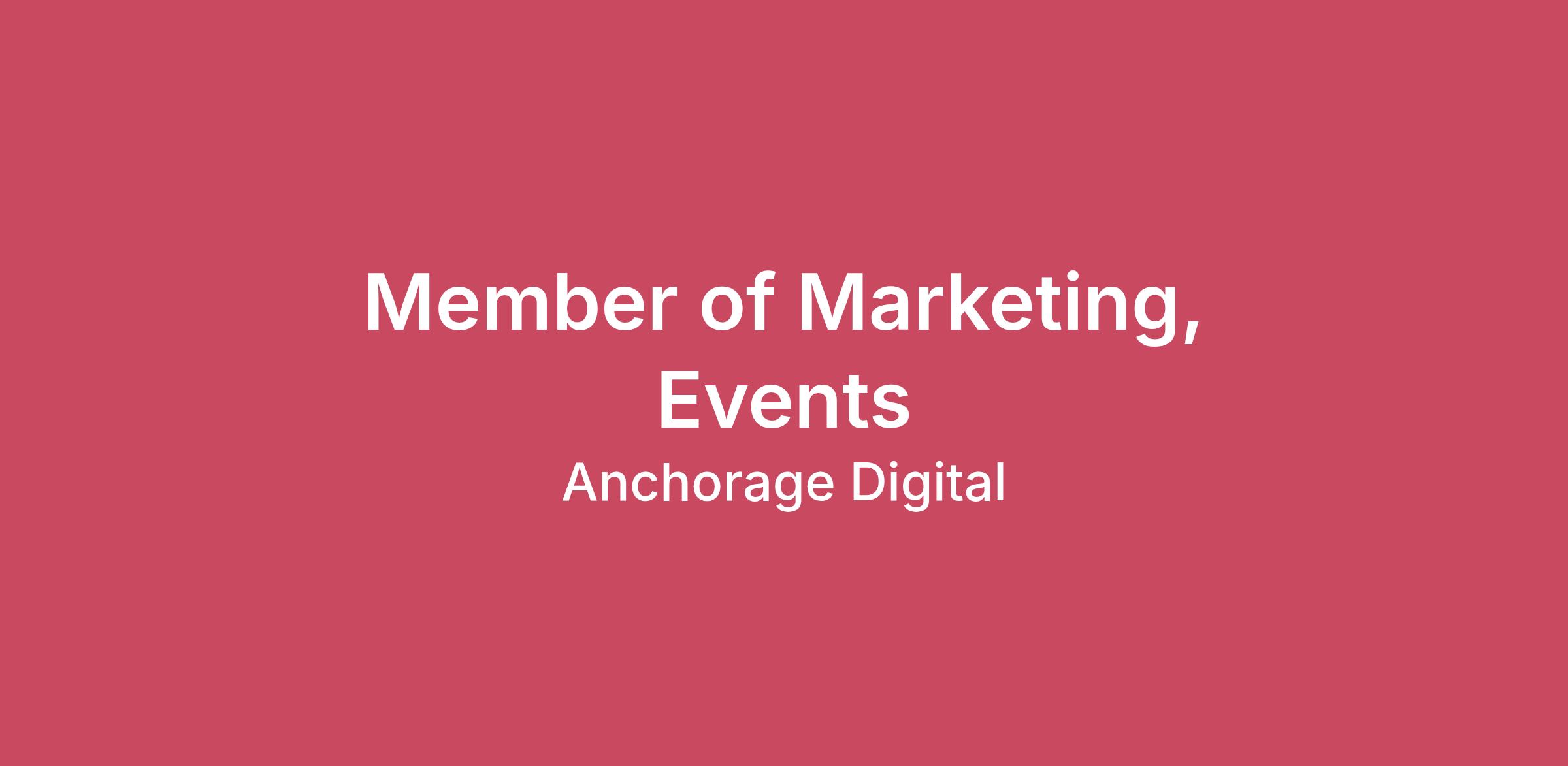 We are looking for a strategic, highly organized, and creative events team member to join and help to execute our global event strategy. You’ll assist the event marketing team on end-to-end planning and execution of industry conferences, executive dinners, hosted experiences, and bespoke institutional events that drive pipeline and foster relationships within key target markets on behalf of the most trusted company in institutional crypto.This is a role that partners closely with executive leadership, sales, and brand. You will succeed in this role if you someone who thrives in fast-paced environments, loves building world-class experiences, and understands how events drive meaningful business impact.We have created the Factors of Growth & Impact to help Villagers better measure impact and articulate coaching, feedback, and the rich and rewarding learning that happens while exploring, developing, and mastering the capabilities and contributions within and outside of the (insert role title) role:\nTechnical Skills:Experience building structured event plans that clearly define objectives, audiences, timelines, budgets, and success metrics, ensuring events are tightly aligned with broader marketing and business goals.Strong operational knowledge of industry conferences and trade shows, including sponsorship execution, booth logistics, speaker coordination, etc.Experience sourcing and managing external vendors and venues, including AV, production, catering, fabrication, and staffing partners. Comfortable reviewing contracts, negotiating scopes of work, and ensuring vendors deliver to agreed-upon timelines and standards.Complexity and Impact of Work:Conduct market research to identify relevant industry events and networking opportunities.Perform post-event analysis including analyzing attendance, engagement, and pipeline impact to inform future event strategy and demonstrate ROI.Organizational Knowledge:Understands Anchorage Digital’s strategic goals and integrates them into event planning and goal-setting.Communication and Influence:Work closely with sales and marketing teams to ensure alignment of field marketing efforts with overall marketing and business objectives.You may be a fit for this role if you have: A proven track record managing third-party events from strategy through execution.Hands on experience with venue sourcing, contract coordination, and vendor management for in-house events.Exceptional project management skills with the ability to manage multiple events simultaneously.Strong communication skills — written, verbal, and interpersonal — with an ability to collaborate across departments.Experience working in fast-paced environments and managing tight deadlines.Data-driven decision-making capabilities.Ability to work independently and as part of a team.Although not a requirement, bonus points if: You have experience working in event marketing within the crypto, finance, or FinTech industriesYou’re proficient in Salesforce, Luma, or other event marketing toolsYou were emotionally moved by the soundtrack to Hamilton, which chronicles the founding of a new financial system. :)\n