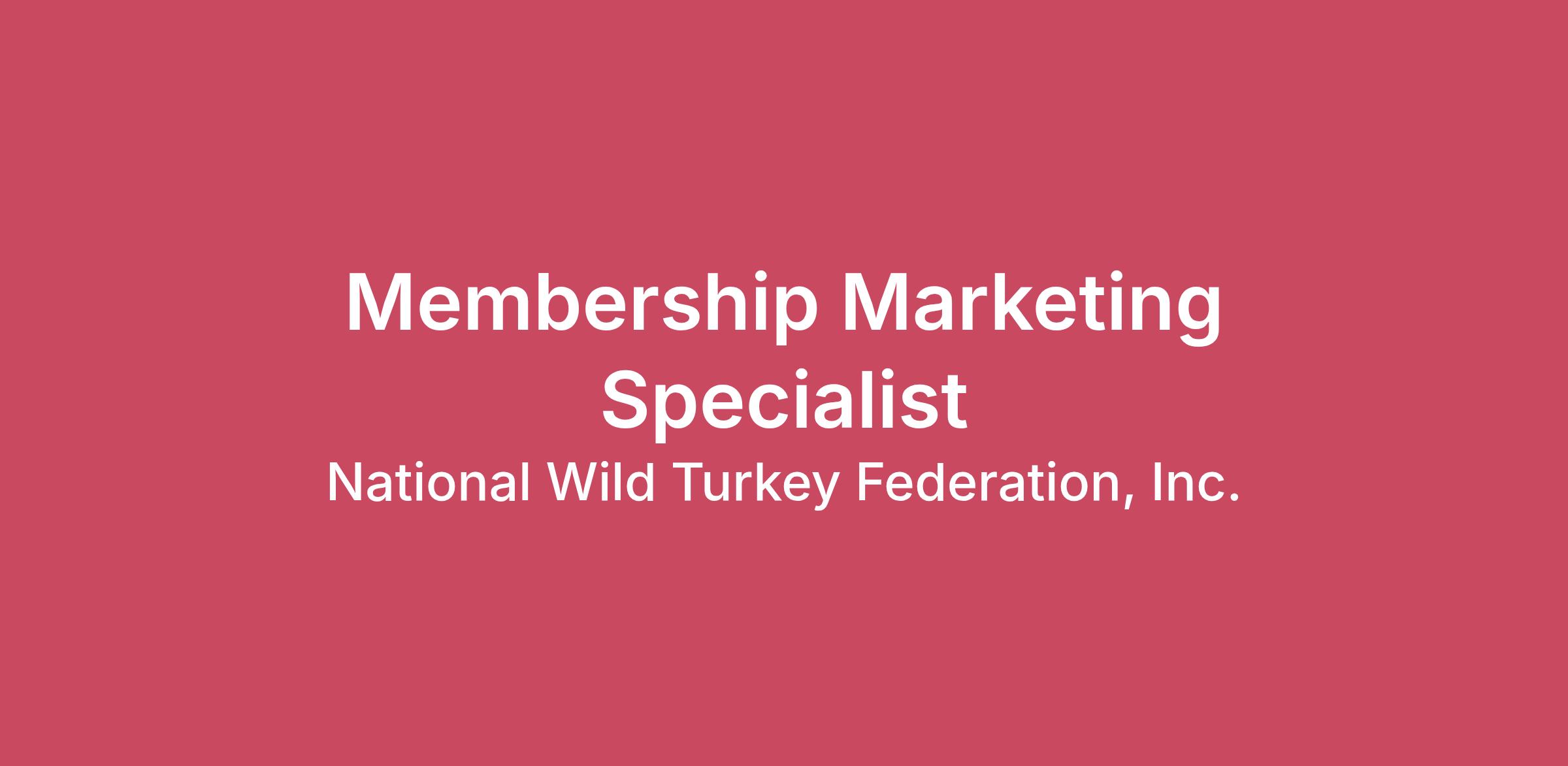 DescriptionJOB DESCRIPTIONTitle: Membership Marketing SpecialistFull-Time or Part-time: Full-Time Department: Corporate RelationsReports To: Director of Membership Employment Category: ExemptJob Summary:Works closely with the Director of Membership on the development and execution of national direct fundraising programs, membership acquisition, membership engagement and retention campaigns to meet the goals of the NWTF. This includes involvement in all aspects of planning, design and implementation of the campaigns or fundraisers. Supervisory Responsibilities:NoneDuties and Responsibilities:Develops and maintains expert knowledge of the department’s membership acquisition, engagement and retention efforts. Plans and executes renewal and retention strategy for memberships.Collaborates with DOM on design, development and execution of membership marketing campaigns to acquire and retain NWTF members.Executes national membership fundraisers, i.e. sweepstakes, etc. Manages firearm frenzies or similar promotions from execution to completion.Initiates and formats formal agreements in Doc 365 for national membership fundraisers. Develops and maintains a tracking system for national membership fundraiser prizes to ensure delivery to NWTF or to the recipientDevelops and maintains systems for tracking results of department activities and helps evaluate the effectiveness of membership marketing strategies.Serves as a liaison for the department to internal and external personnel who collect, fulfill and maintain member and prospect data.Focuses on meeting membership growth targets.Monitors and tracks budgets for membership marketing campaigns, as needed. Monitors the effectiveness of membership marketing campaigns.Identifies new membership marketing and revenue enhancement opportunities. Identifies synergies to promote better integration of membership marketing activities across all NWTF departments and program areas.Handles departmental administrative responsibilities and special projects as needed (may include financial and shipping requests).Works with Director of Membership to fulfill regional staff requests or coordination and execution of membership acquisition, fundraising and special events. Tracks program metrics such as conversion rates that measure each promotion’s effectiveness and return on investment.Provides an accurate recipient list for all magazine mailings, all renewal efforts (digital or mail), all welcome membership cards, segmented audiences for acquisition to a third party, and various membership efforts. Creates and monitors membership campaigns, as needed, for various membership and/or fundraising efforts through MMS and MMS 2.0. Regularly performs an inventory audit between Wolff reports and the NWTF inventory system.Writes Purchase orders for DOM to approve for incentive products.Convention duties to include but not limited to:Develop and plan activities for the membership booth under Director of Membership’s guidance.Manage and oversee all aspects of the membership booth, including but not limited to submitting graphic requests, ensures booth is staffed, and makes sure equipment and supplies are available.Performs other related duties as assigned.Attend annual NWTF Convention, regional meetings, offsite membership activations, and training opportunities, as necessary, which includes overnight travel.RequirementsRequired Skills/Abilities:Specialized knowledge of marketing material production and promotionProficiency with all Microsoft Office Suite or related software Exceptional project management skills and organizationStrong writing abilityWorking knowledge of advertising, promotion, and digital communications, including working with designers and agenciesStrong work ethic and positive attitudeSelf-starter with the ability to work independently, remotely, and meet critical work product deadlines.Excellent verbal and written communication skills. Excellent interpersonal and customer service skills.Excellent organizational skills and attention to detail.Excellent time management skills Strong analytical and problem-solving skills.Ability to function well in a high-paced and at times stressful environment.Education and Experience:Bachelor's Degree or equivalent relevant work experience required, preferably in marketing or digital marketingMinimum of two years consumer or member direct response marketing or communications preferred. Association or marketing agency experience preferred. Nonprofit membership organization knowledge a plus.Physical Requirements:Prolonged periods of sitting at a desk and working on a computer.Must be able to lift up to 25 pounds at times. Remote or Telecomm Status:Position can work remotely.