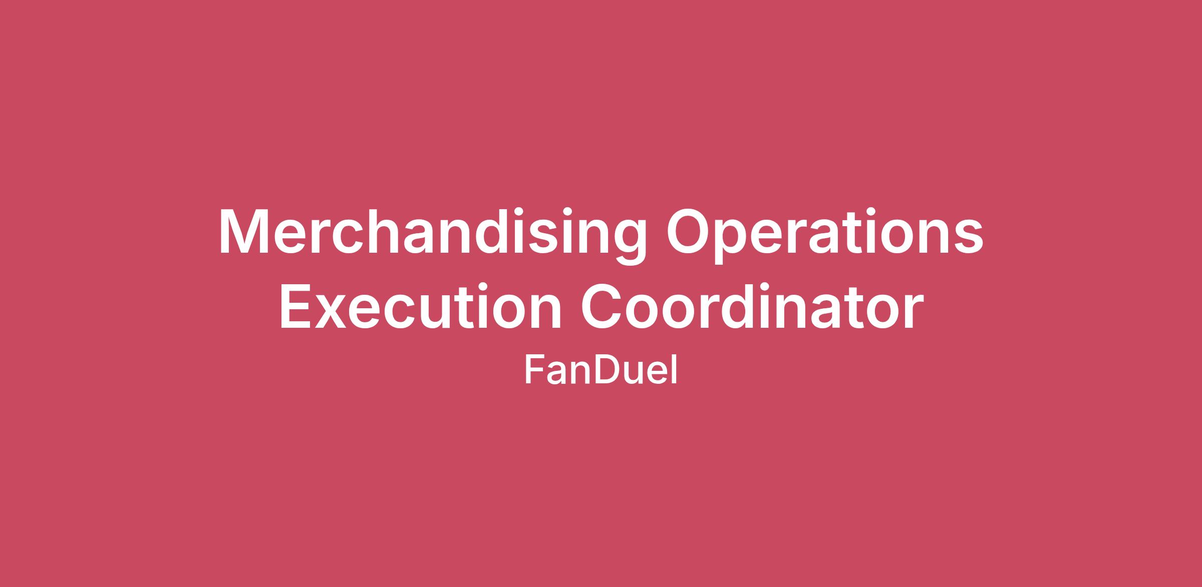 As a Merchandising Operations Execution Coordinator on our hybrid Sportsbook & Flywheel Operations Team, you'll be at the center of FanDuel's most dynamic operations. This role combines the fast-paced world of Sportsbook Execution with the strategic merchandising and creativity of operating our Flywheel products, requiring exceptional sports knowledge, unwavering attention to detail, and the flexibility to adapt on the fly to our 24/7 sporting calendar.
