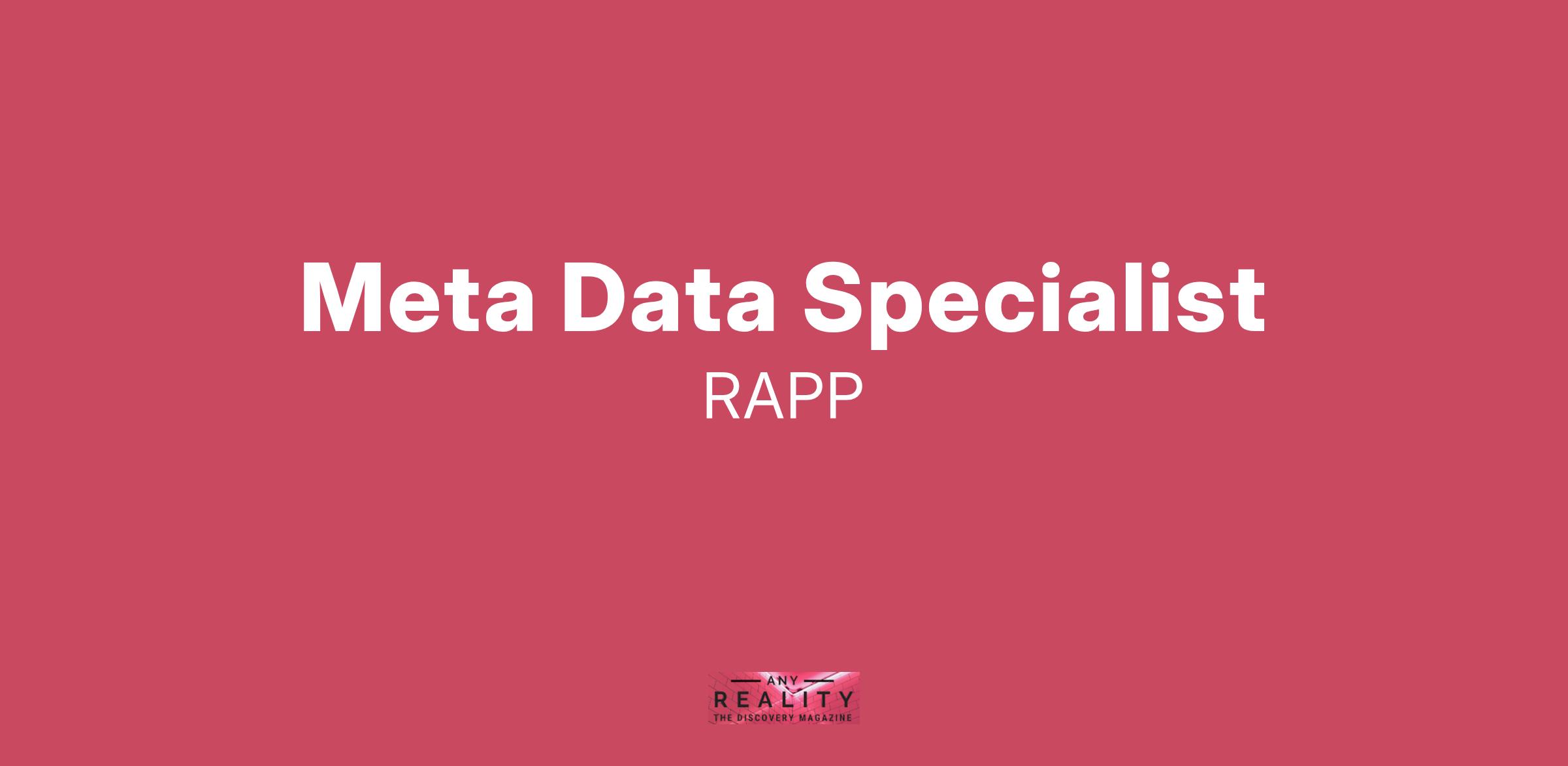 RAPP Chicago is looking for a Meta Data Specialist to join our award-winning Technology team.