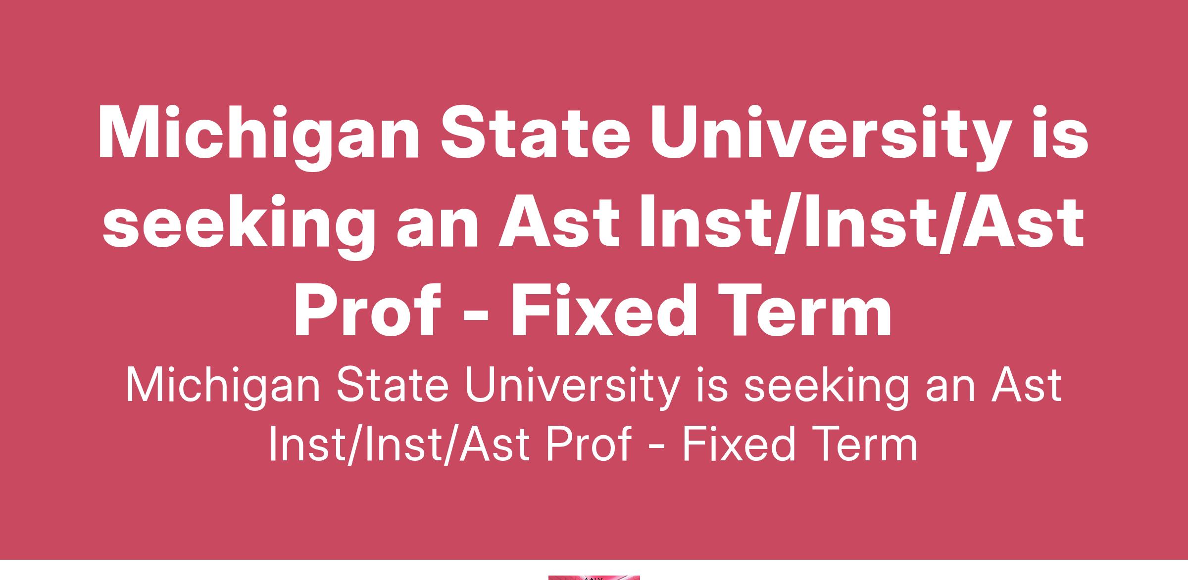 Michigan State University is seeking an Ast Inst/Inst/Ast Prof - Fixed Term