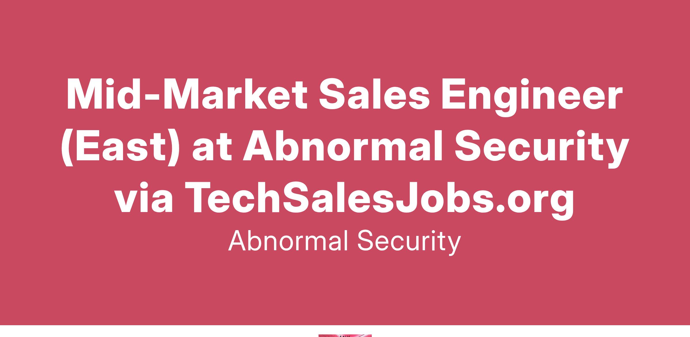 Abnormal Security is seeking an Mid-Market Sales Engineer (East) to join our growing Sales Engineering team. As a Mid-Market Sales Engineer, you will be our customer’s technical contact, and craft strategic business cases to win customers over & help them conquer their most intractable email security challenges.