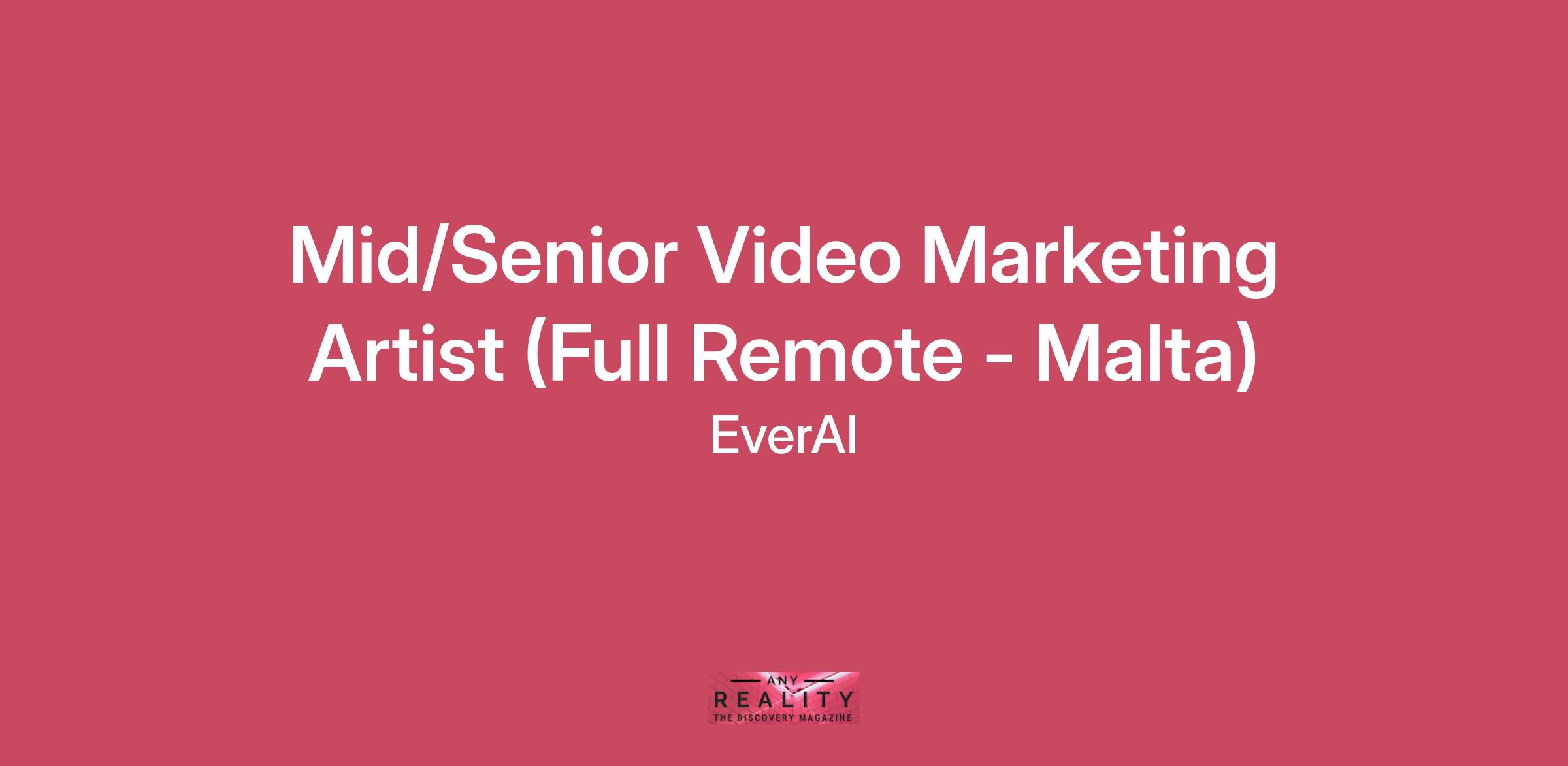 Mid/Senior Video Marketing Artist (Full Remote - Malta)