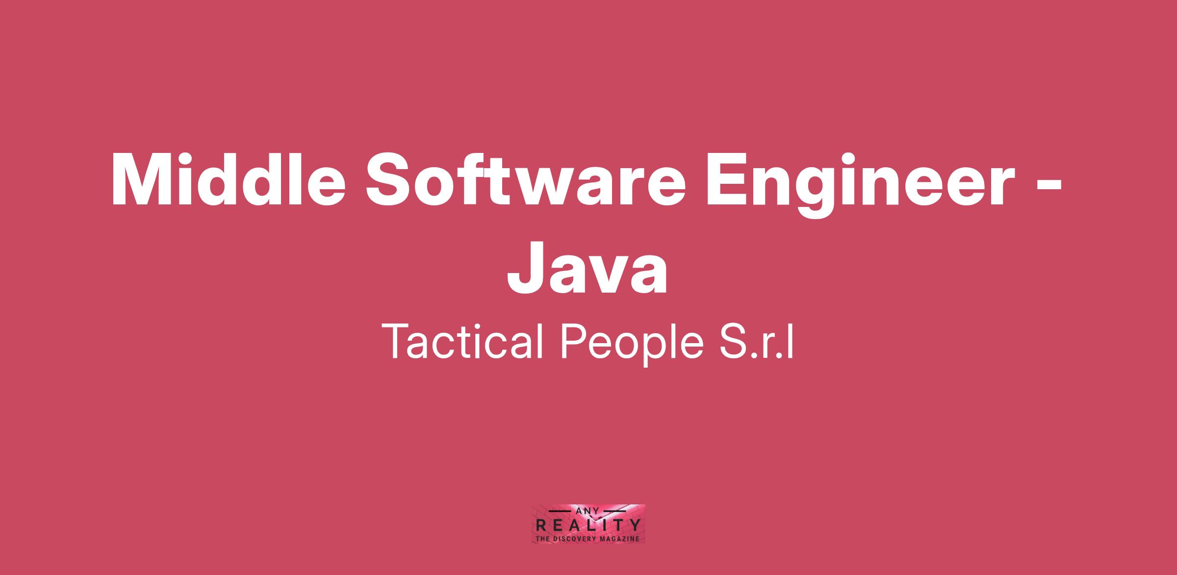 Unisciti a TACTICAL PEOPLE: Innovazione, Persone e Crescita nel Cuore della Digital Transformation Da oltre 20 anni, TACTICAL PEOPLE si posiziona come leader nel mercato ICT, guidando con passione e competenza i nostri clienti di medie e grandi dimensioni attraverso il dinamico percorso della digital transformation. La nostra mission è chiara: non solo abbracciare il cambiamento tecnologico, ma guidarlo, creando soluzioni all'avanguardia che plasmino il futuro digitale. In TACTICAL PEOPLE, crediamo fortemente nel mettere le persone al centro di ogni nostra iniziativa. Le persone sono il cuore pulsante della nostra azienda; il loro benessere, la loro crescita e il loro sviluppo sono la nostra priorità. Ci impegniamo a condividere le strategie aziendali con trasparenza e a fornire formazione e supporto a ogni livello, garantendo che ogni membro del team sia equipaggiato per eccellere e innovare. Stiamo cercando individui che condividano la nostra visione, che siano guidati dalla passione per la tecnologia e che desiderino essere protagonisti nella costruzione di un futuro digitale più luminoso. Se sei pronto a far parte di una squadra che valorizza il talento, incoraggia la crescita personale e professionale e lavora in prima linea nel settore della digital transformation, TACTICAL PEOPLE è il posto giusto per te. Posizione Aperta: Middle Software Engineer - Java Sede: Full remote Descrizione del Ruolo: Il candidato ideale ha esperienza nello sviluppo con Java 16 e competenze nella gestione di ambienti containerizzati utilizzando Docker e Kubernetes. Cosa offriamo: Inserimento immediato in una Tech Community giovane e dinamica. TACTICAL LEARNING HUB, con corsi di aggiornamento e formazione. Il presente annuncio è rivolto ad entrambi i sessi, ai sensi delle leggi 903/77 e 125/91, e a persone di tutte le età e tutte le nazionalità, ai sensi dei decreti legislativi 215/03 e 216/03. I curricula dovranno pervenire completi di dicitura che autorizza il trattamento dei propri dati: “Si autorizza al trattamento dei dati personali ai sensi del D. Lgs. 196/2003.