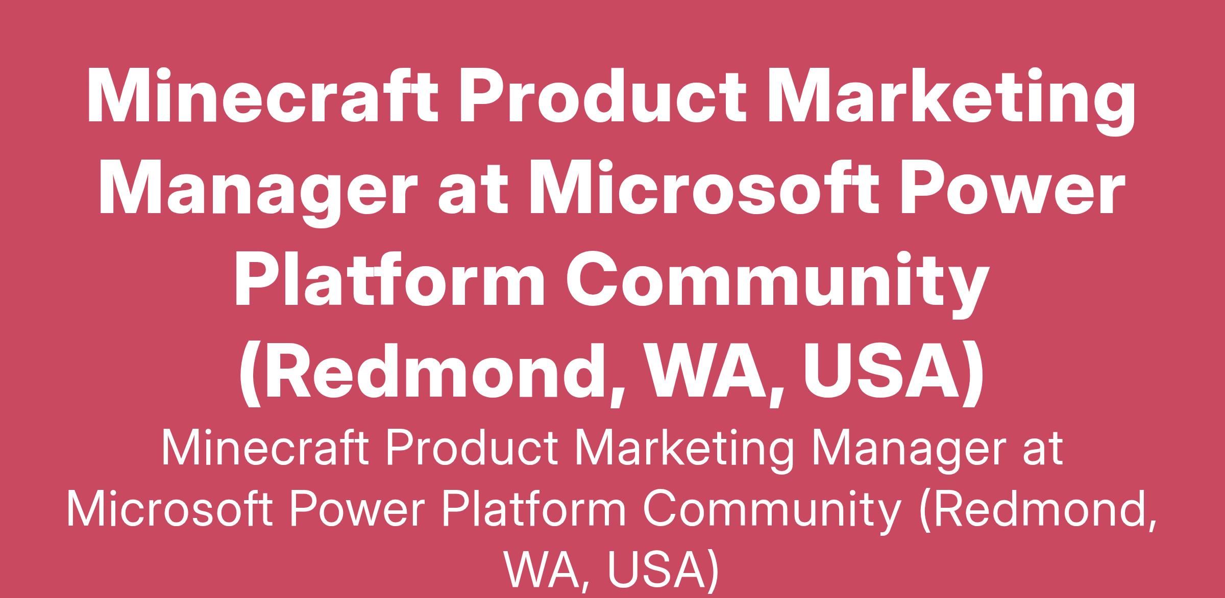 Minecraft Product Marketing Manager at Microsoft Power Platform Community (Redmond, WA, USA)