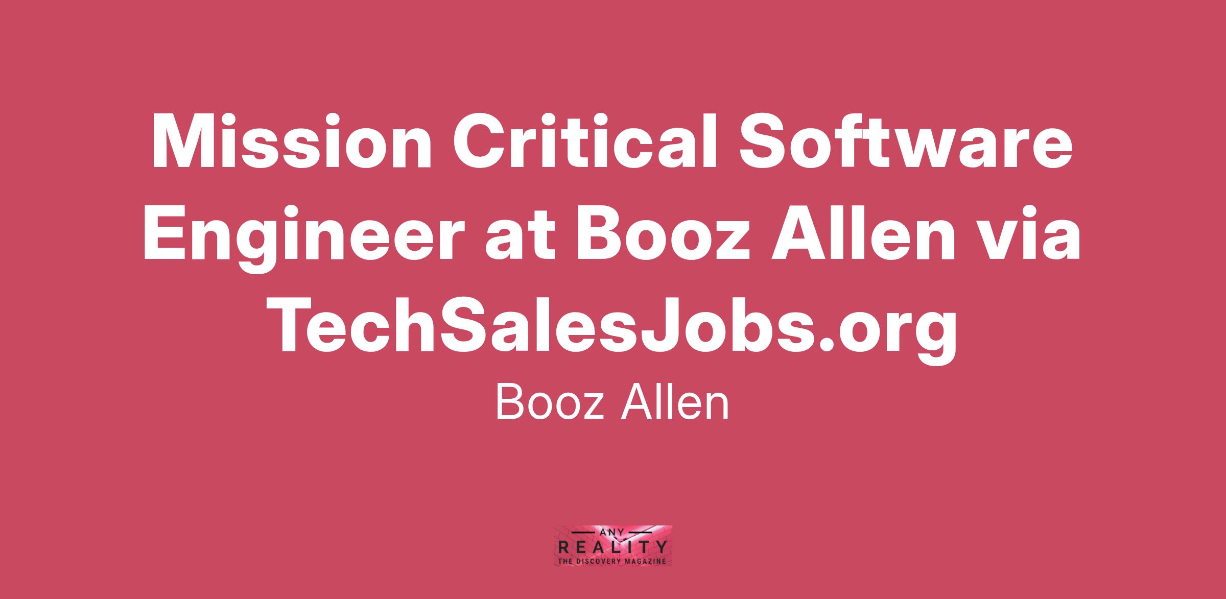 Mission Critical Software Engineer at Booz Allen via TechSalesJobs.org