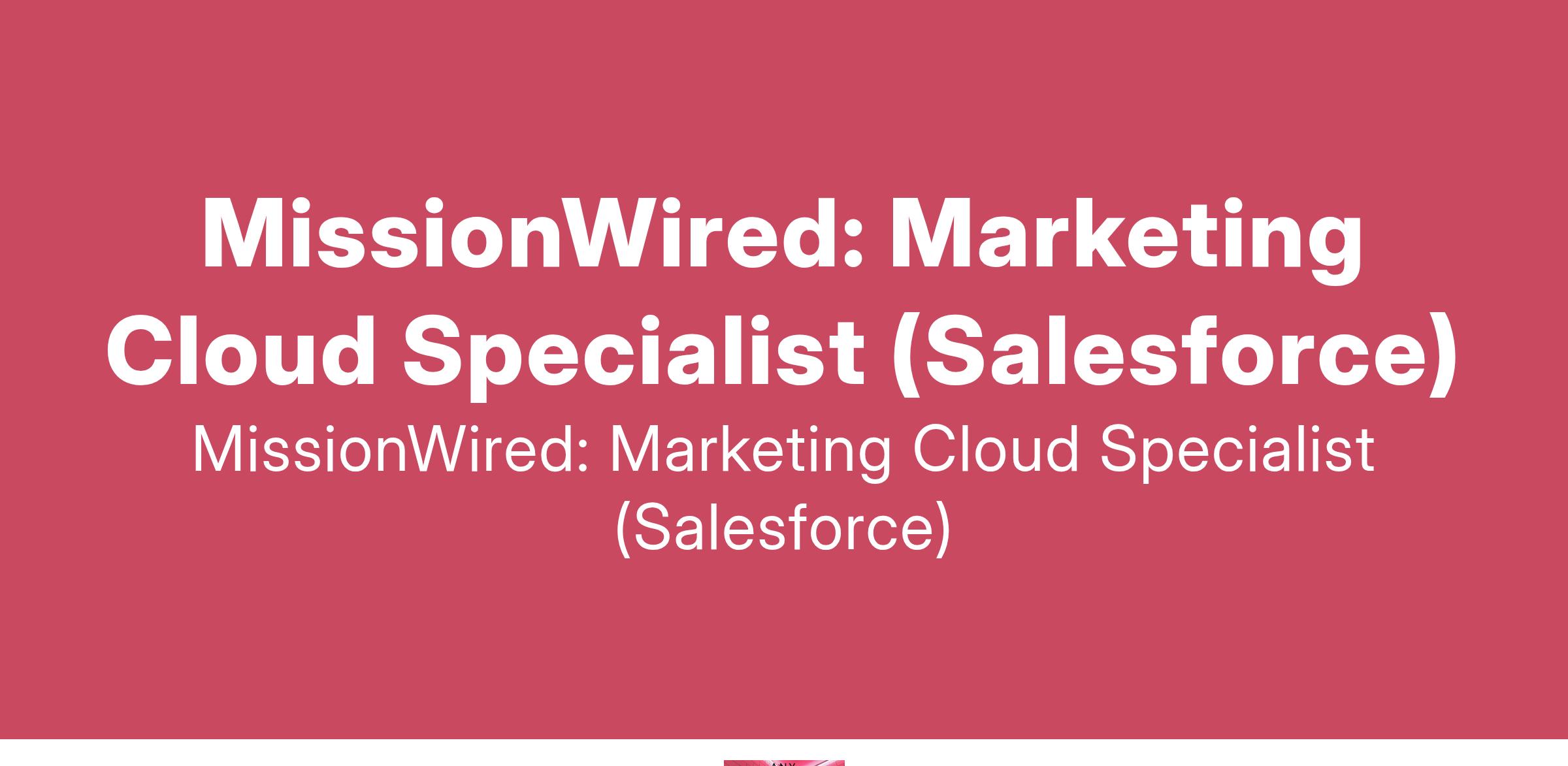 To apply: https://weworkremotely.com/remote-jobs/missionwired-marketing-cloud-specialist-salesforce