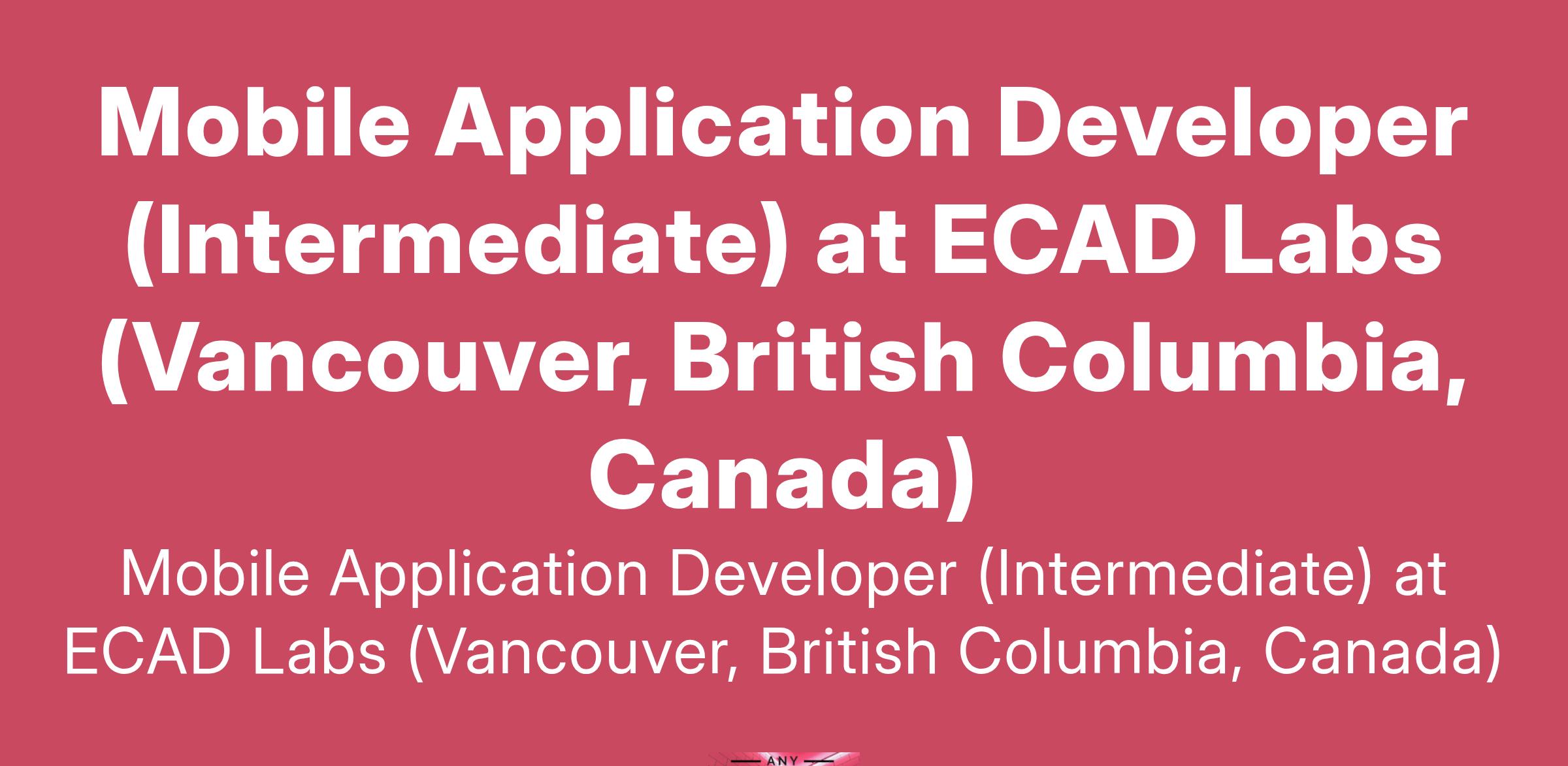 Mobile Application Developer (Intermediate) at ECAD Labs (Vancouver, British Columbia, Canada)