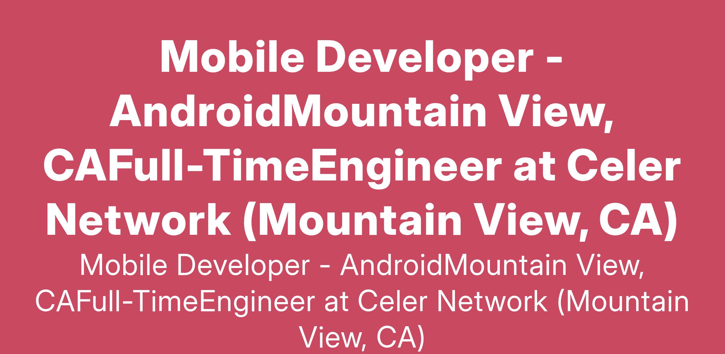 Mobile Developer - AndroidMountain View, CAFull-TimeEngineer at Celer Network (Mountain View, CA)