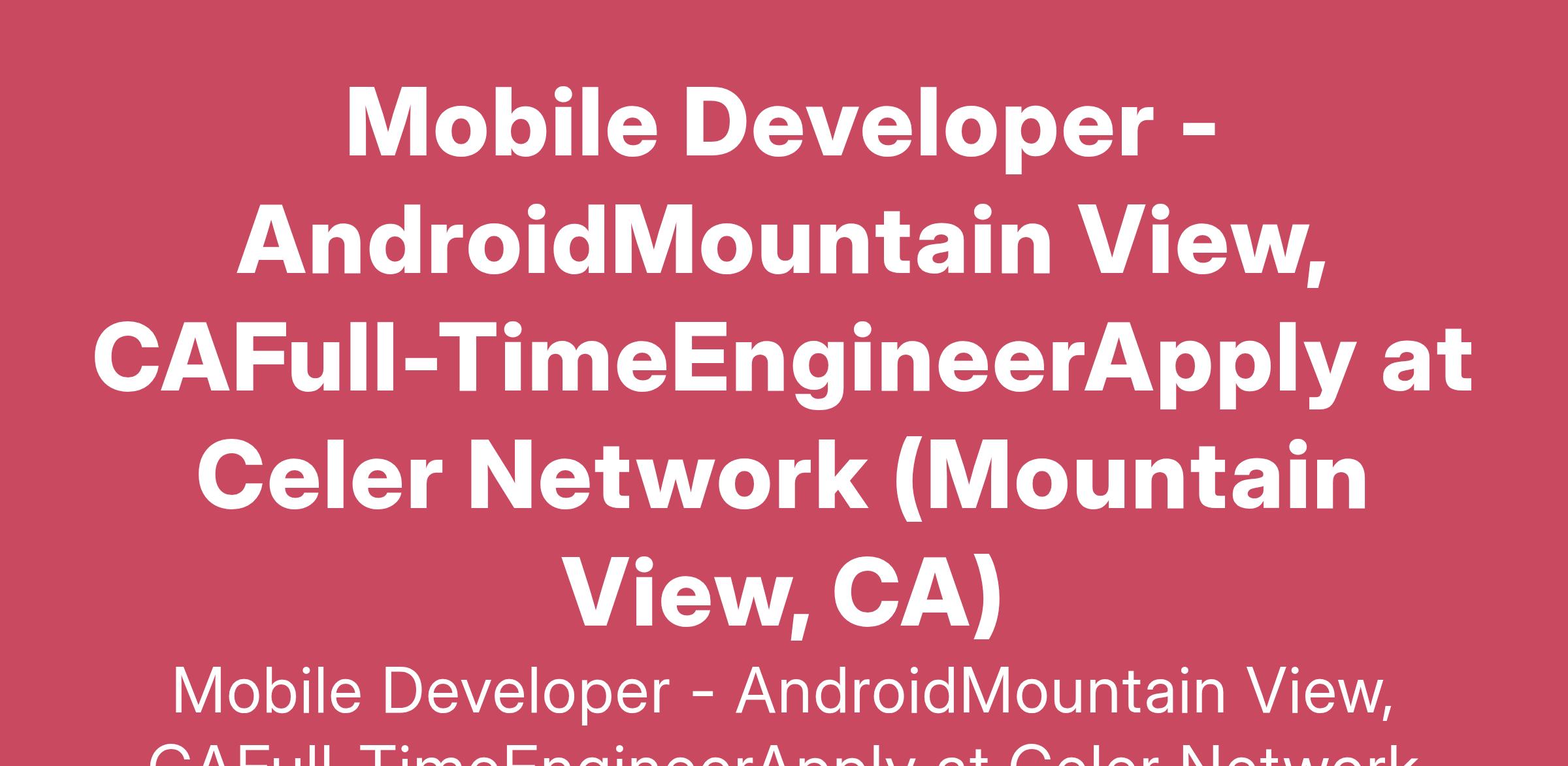 Mobile Developer - AndroidMountain View, CAFull-TimeEngineerApply at Celer Network (Mountain View, CA)