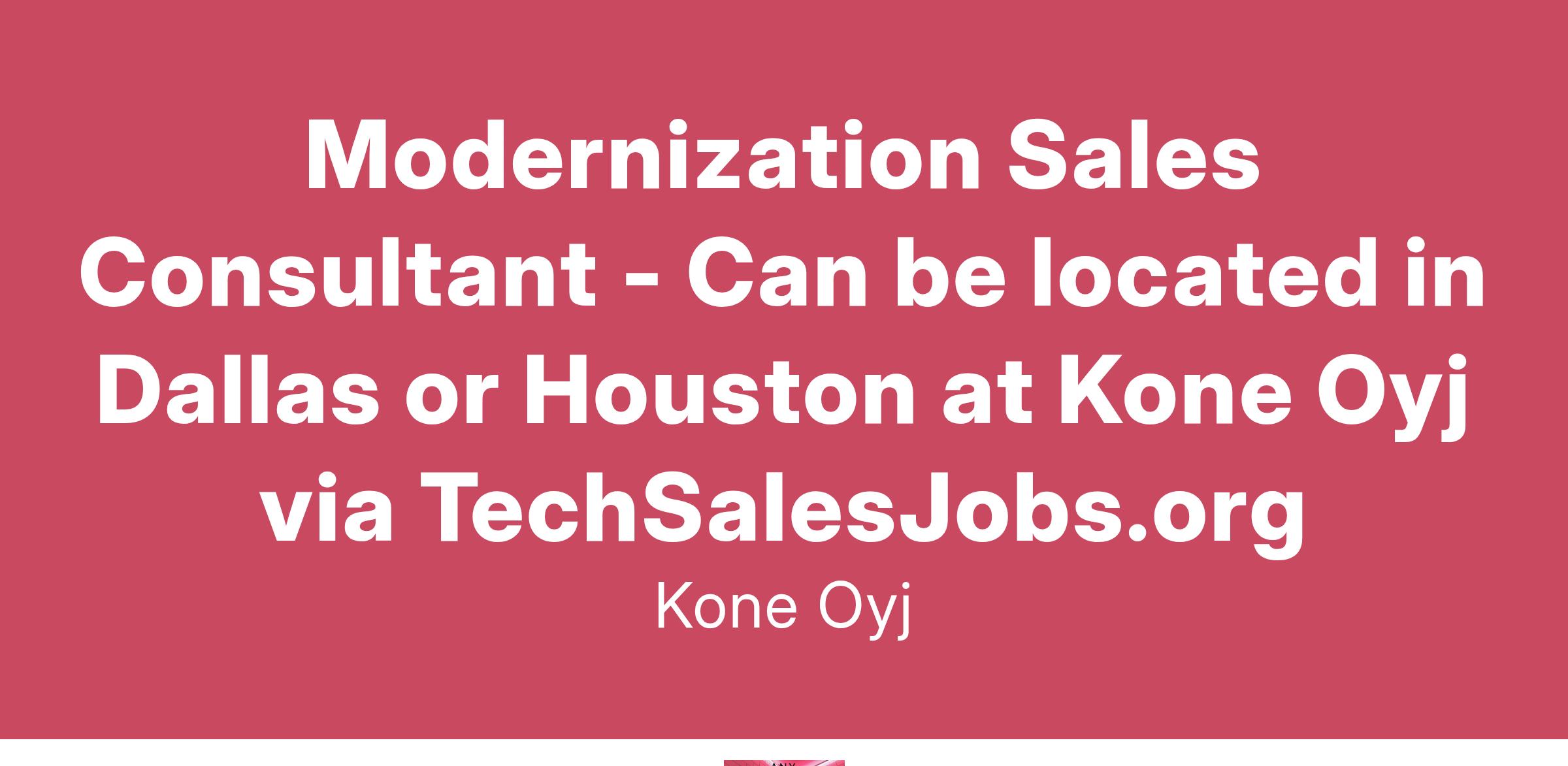 Are you ready to make your next career move to join our team and manage your own local territory as aModernization Sales Consultantfor KONE Dallas or Houston, TX area?