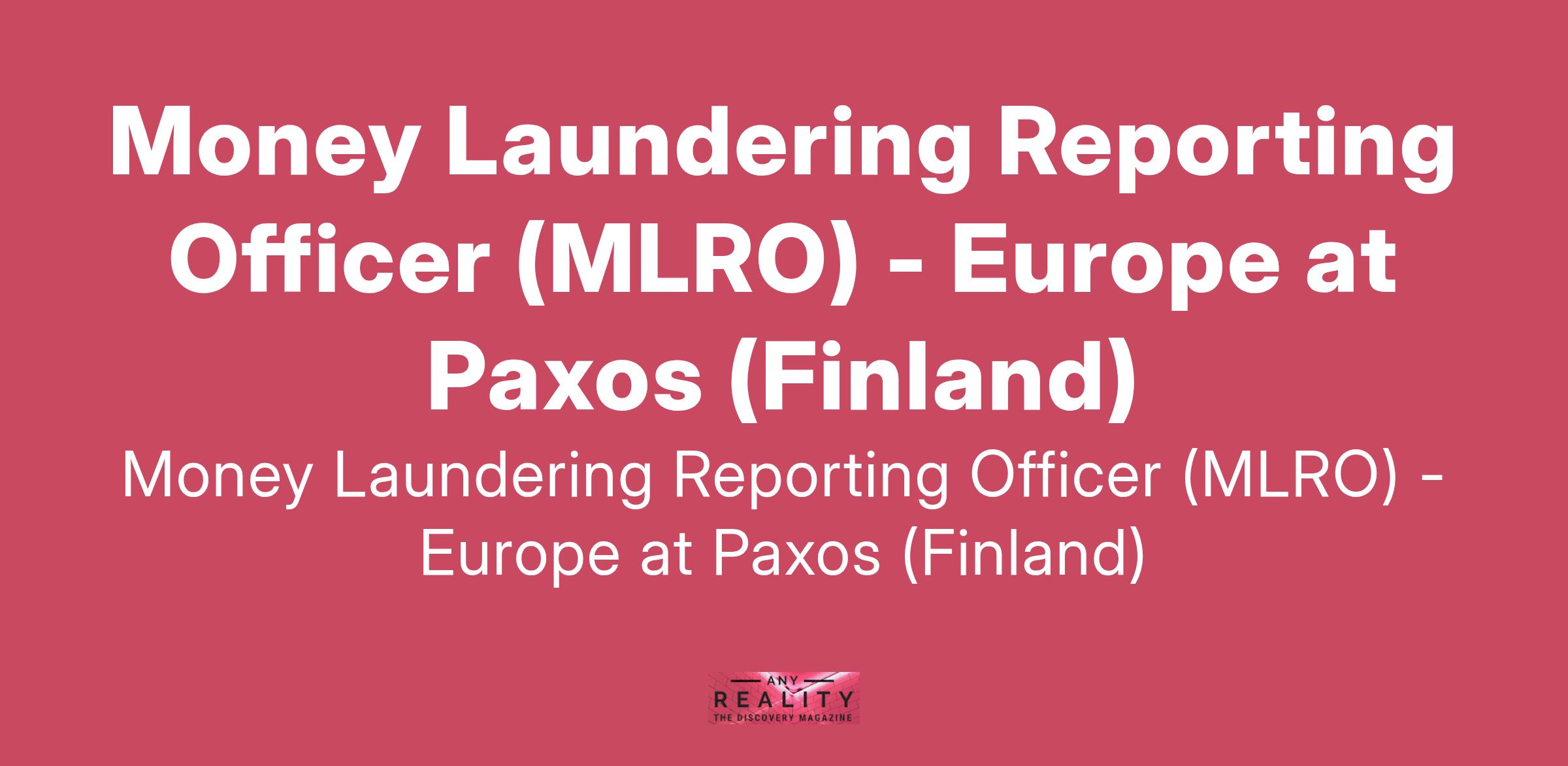 Money Laundering Reporting Officer (MLRO) - Europe at Paxos (Finland)