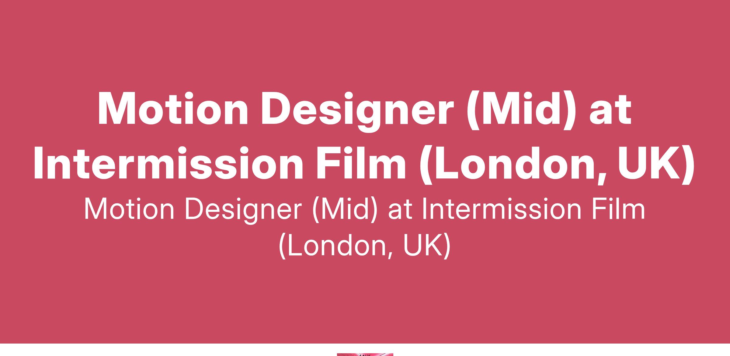 Motion Designer (Mid) at Intermission Film (London, UK)
