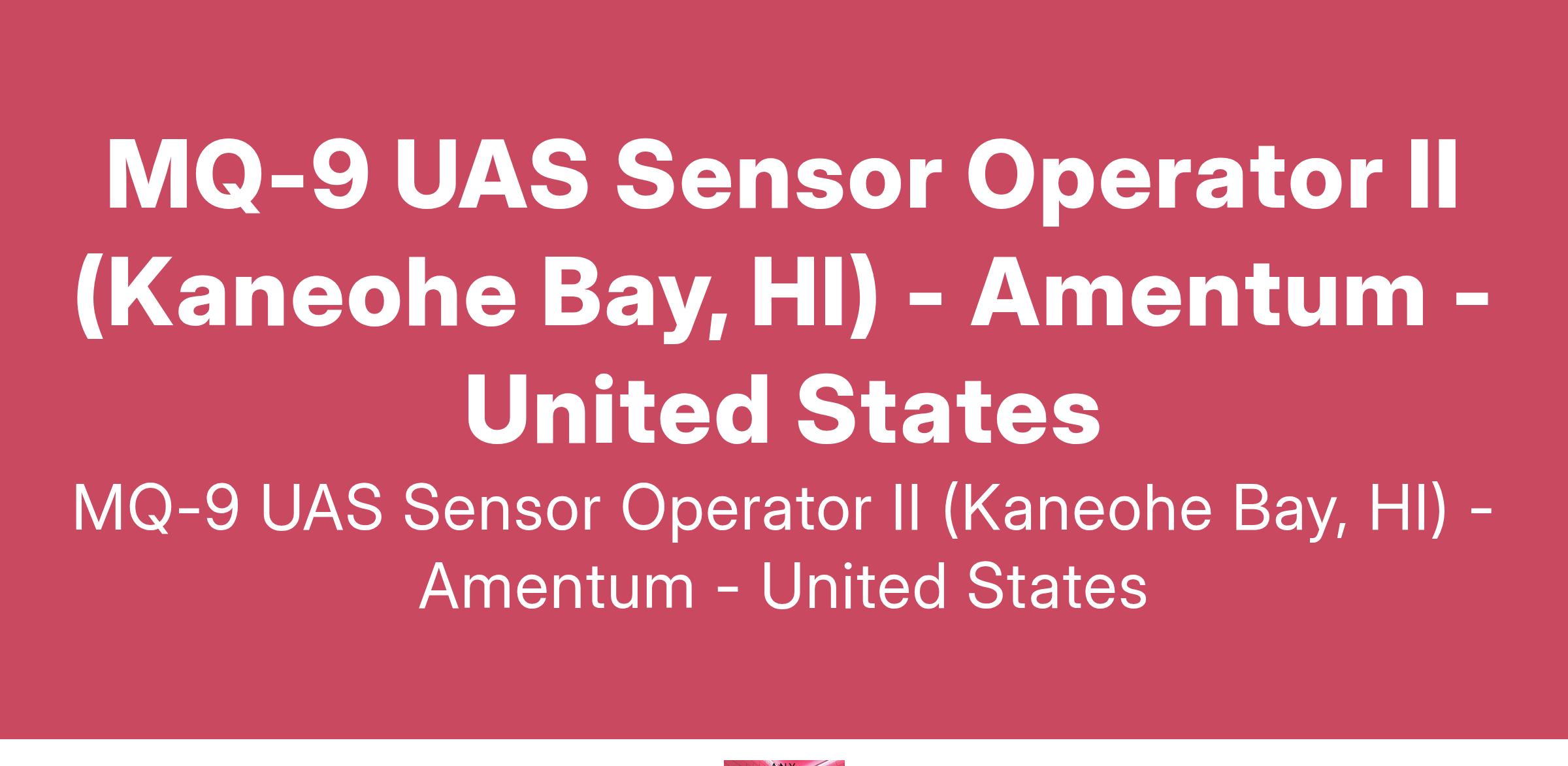 - Within the last 10 years, at least one year of MQ-9 Sensor Operator duties to US Naval/USAF UAS flight operations or within the last 15 years, at least 3 years of MQ-9 sensor operator duties supporting US Naval/USAF UAS flight operations.