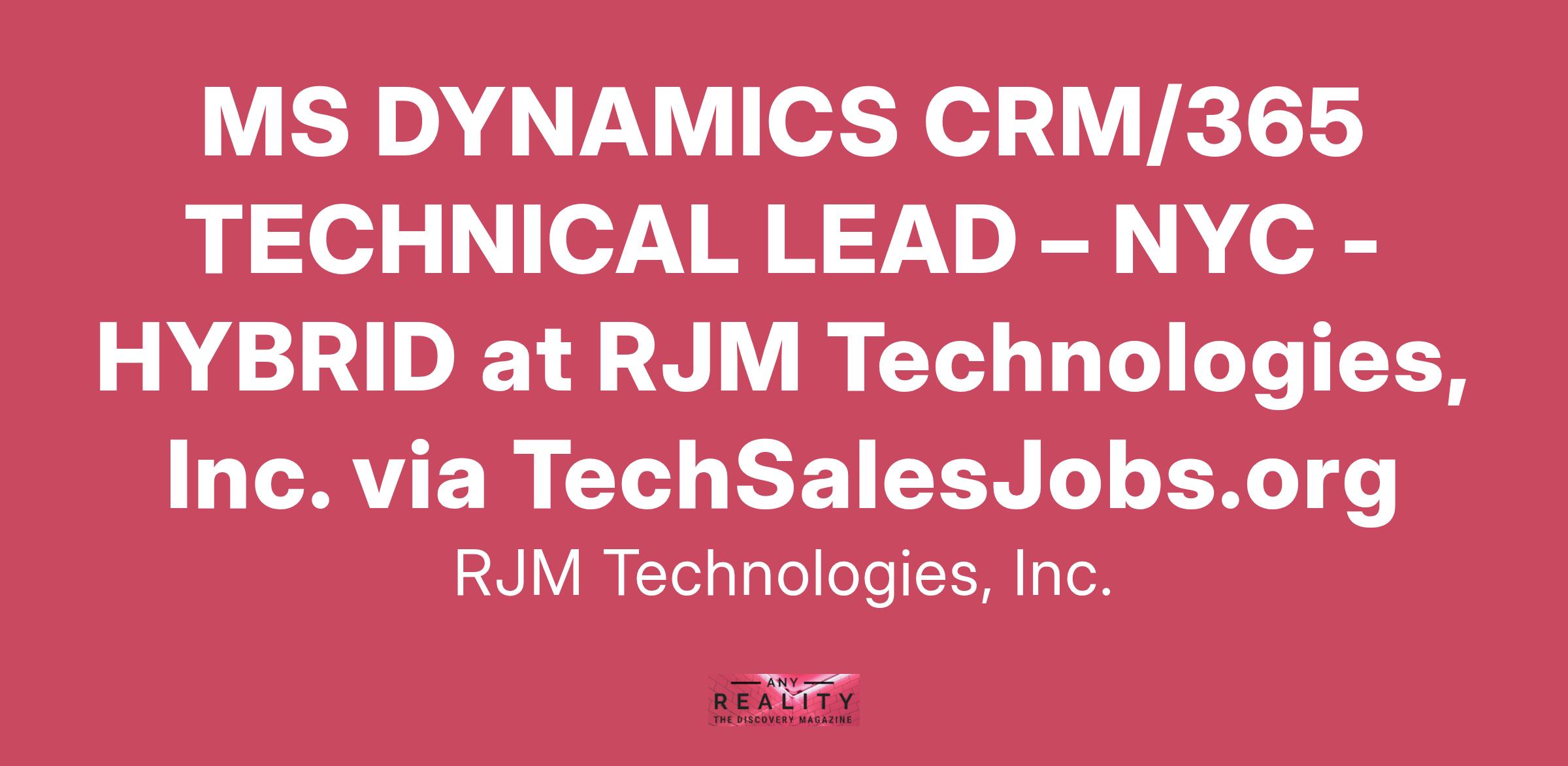 *MS DYNAMICS CRM/365 TECHNICAL LEAD – NYC - HYBRID*