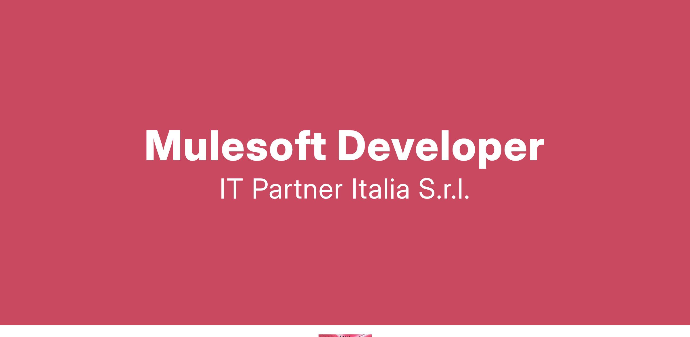 Competenze richieste: IT Partner Italia ricerca candidati con il seguente profilo professionale: Mulesoft Developer . Siamo alla ricerca di una risorsa dinamica e motivata che si occupi dello sviluppo di applicazioni su tecnologie MuleSoft. Il candidato ideale lavorerà su progetti innovativi in un ambiente collaborativo, contribuendo attivamente alla trasformazione digitale delle aziende clienti. Competenze tecniche richieste: - Almeno 1/2 anni di esperienza - MuleSoft: esperienza consolidata nello sviluppo con Mule 4.X (preferibili versioni dalla 4 in poi) - Integrazione di sistemi: conoscenze approfondite su tecniche di integrazione e gestione delle API - Preferibile, ma non obbligatoria, la certificazione MuleSoft Certified Developer - Attitudine al lavoro in team: capacità di collaborare in un contesto multidisciplinare - Forte attenzione alle esigenze del cliente e predisposizione al problem-solving - Approccio analitico per comprendere e risolvere problematiche tecniche complesse - Spirito di iniziativa e adattabilità a contesti in evoluzione Competenze aggiuntive gradite: - Conoscenza di API Management e gestione di DataWeave per la trasformazione dei dati - Esperienza con strumenti di versionamento come Git - Conoscenza di pratiche Agile per la gestione dei progetti - Familiarità con ambienti di deploy come CloudHub o on-premise Si prega di inviare il CV dettagliato in formato europeo all'indirizzo indicando il codice posizione 2025-015-XX-SLSFRC ed autorizzando il trattamento dei dati personali ai sensi del D. Lgs. 196/2003. L'offerta è rivolta a candidati di entrambi i sessi nel rispetto delle norme sulle parità di trattamento in materia di occupazione e di condizioni di lavoro (D.Lgs. 216/03).