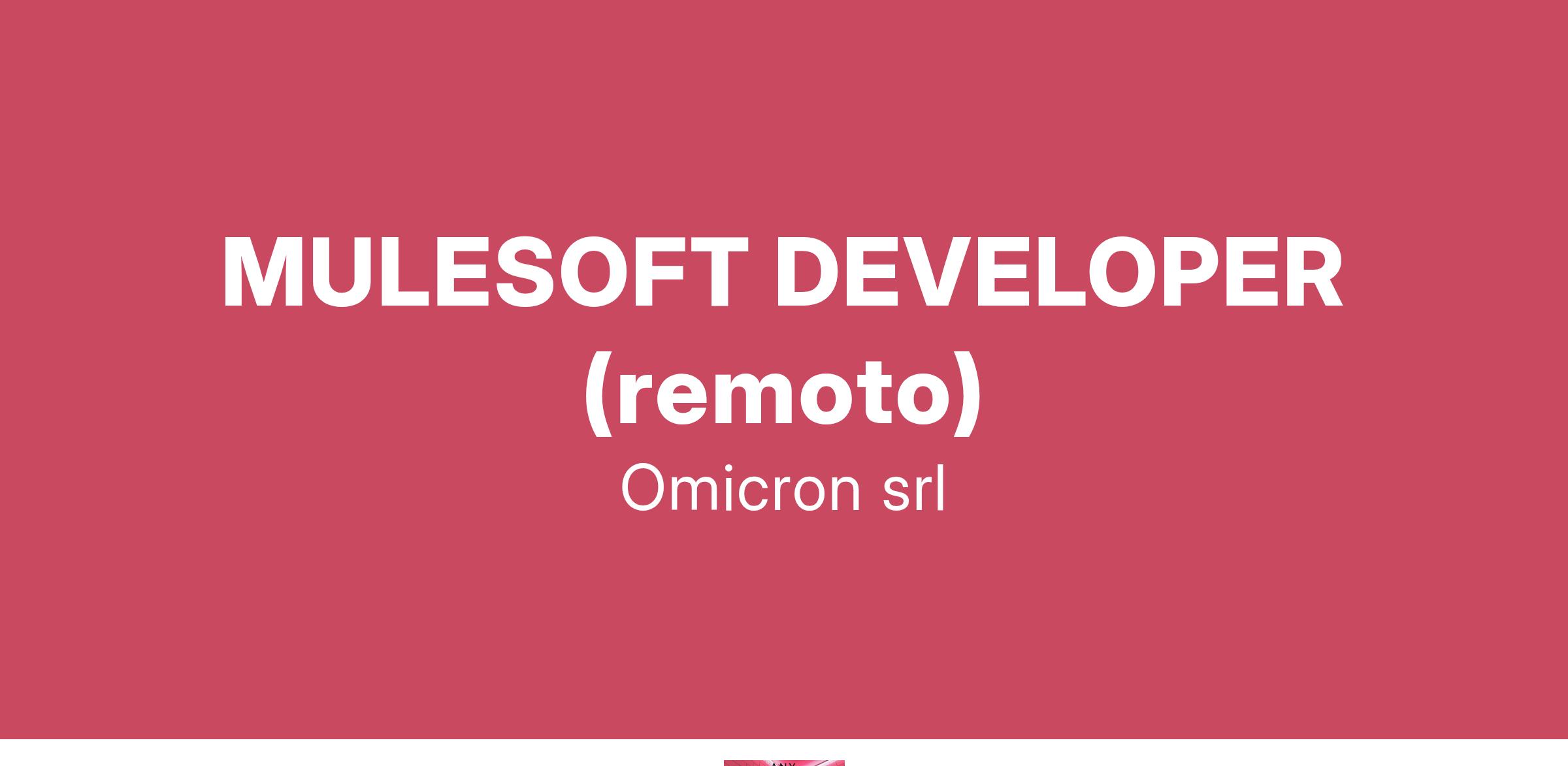 Omicron S.r.l., società in forte espansione nell’area della consulenza informatica, ricerca: MULESOFT DEVELOPER (remoto) Due anni di esperienza nell'utilizzo di Mulesoft. Attività di Mulesoft Developer per noto cliente in ambito Infrastrutture di rete . La risorsa, ricercata per ampliamento del team, svolgerà attività di sviluppo di applicazioni su tecnologie Mulesoft per l'integrazione tra diversi sistemi. In particolare, il candidato ideale possiede conoscenze e competenze verticali in MULE 4.X (preferibili versioni dalla 4 in poi) L’attività verrà svolta in FULL TIME (9,00-18,00). Si offre: •Contratto a tempo determinato della durata iniziale di 12 mesi piu rinnovi. •Retribuzione commisurata alle effettive competenze maturate. Sede di lavoro: remoto Gl’interessati possono candidarsi inviando il CV all'indirizzo mail: L’offerta si intende rivolta a candidati ambosessi, nel rispetto del D.Lgs. n. 198/2006 e ss.mm.ii. e dei Decreti Legislativi n. 215 e n. 216 del 2003 sulle parità di trattamento. I candidati sono invitati a leggere l’informativa privacy ai sensi degli artt. 13 e 14 del Reg. EU 679/2016.