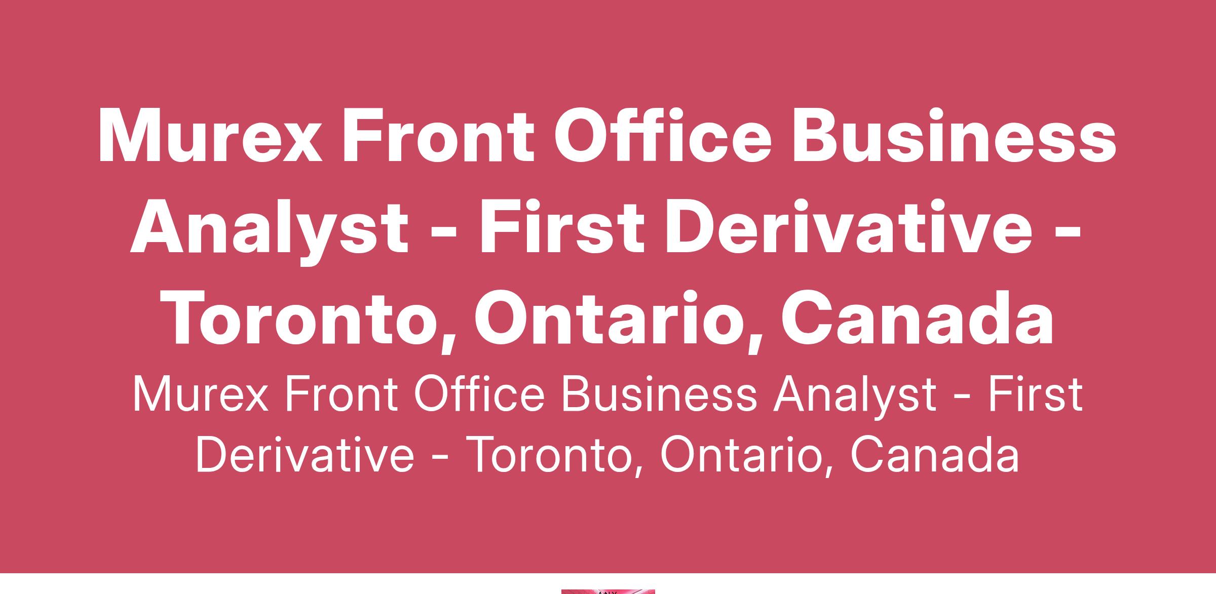 To meet the growing demand for our First Derivative services, we are looking to hire a Front Office Murex Business Analyst in Canada!