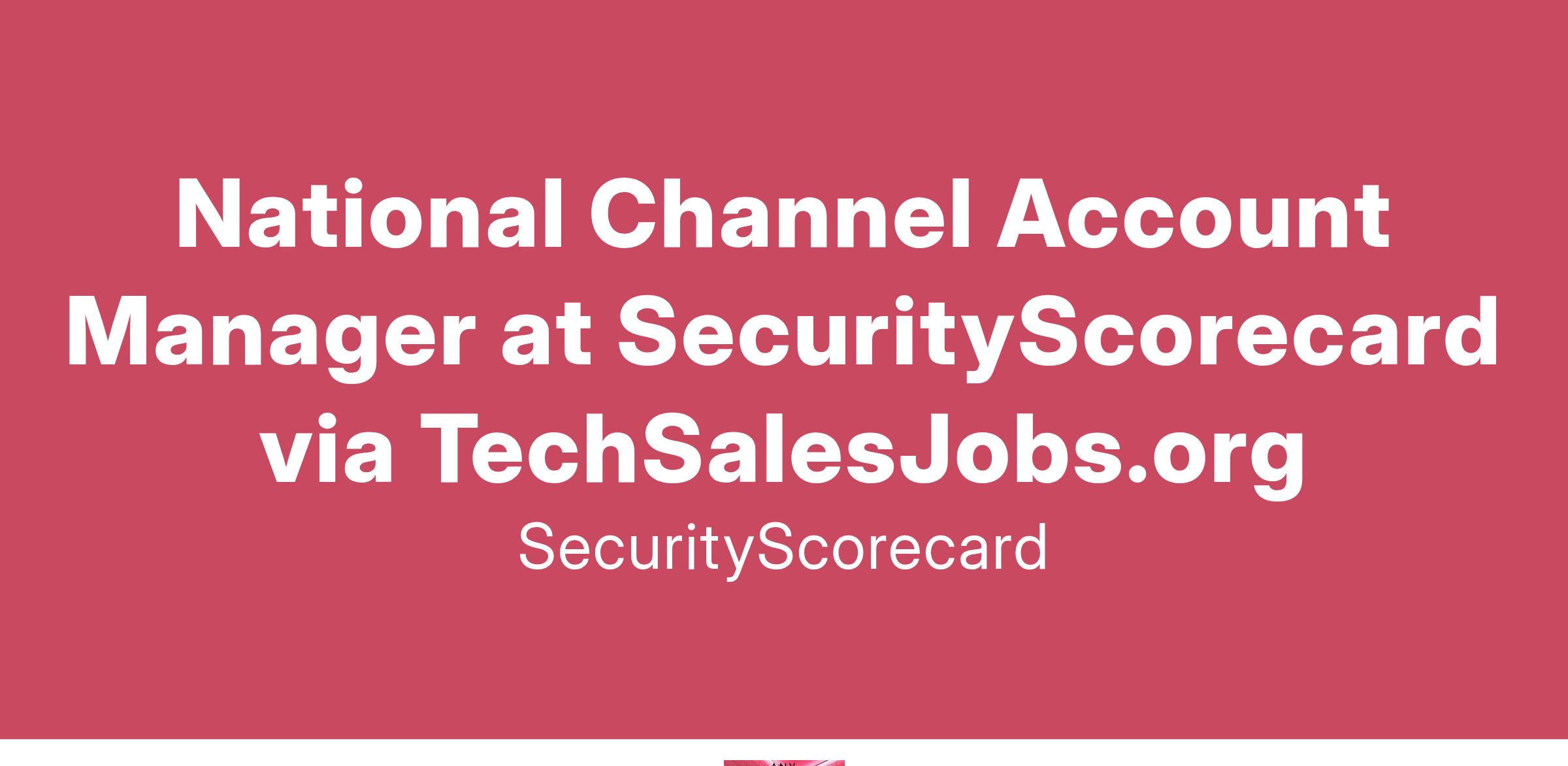National Channel Account Manager at SecurityScorecard via TechSalesJobs.org