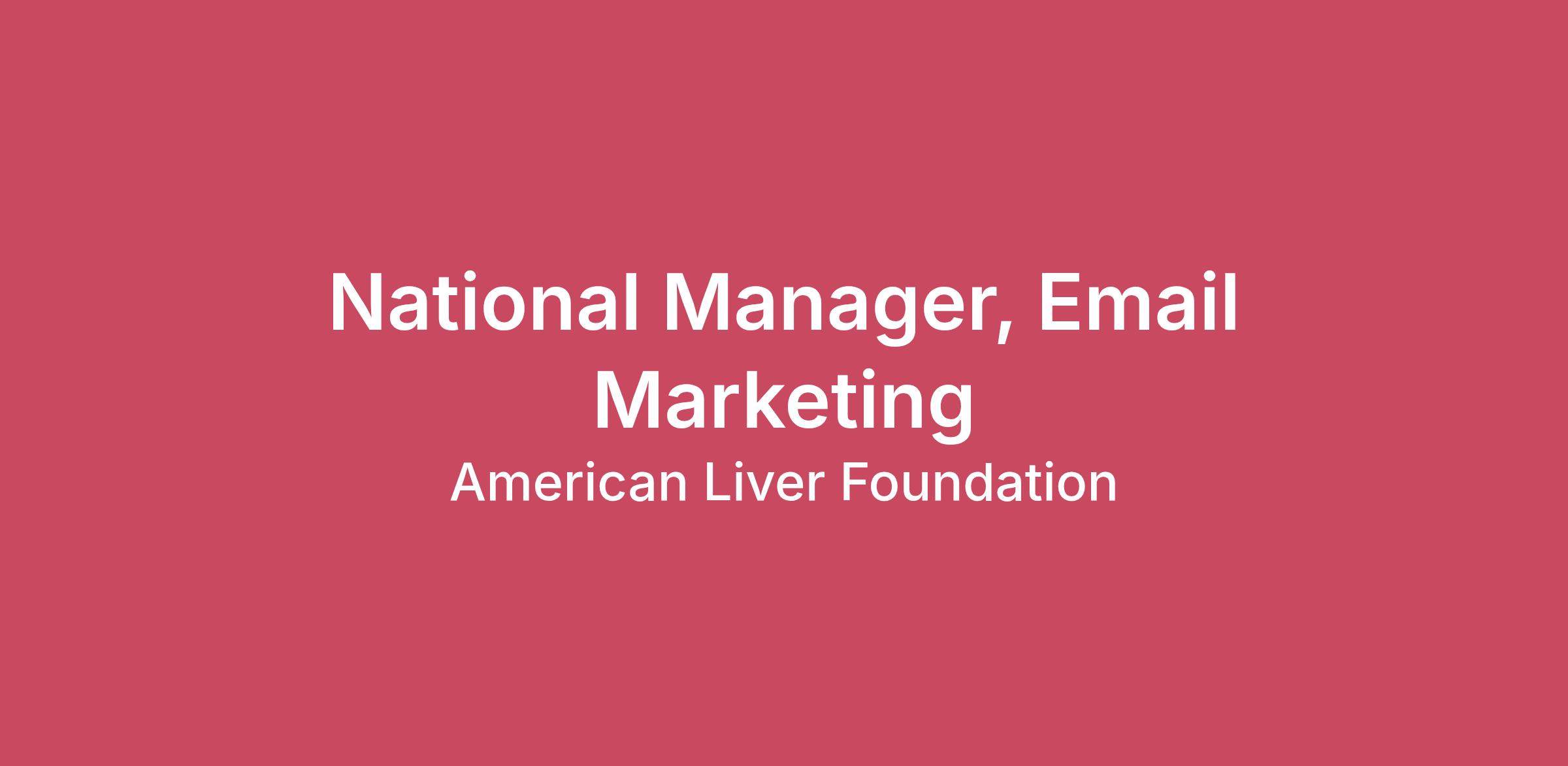 The American Liver Foundation (ALF) is the nation's leading non-profit organization dedicated to liver health and disease prevention. ALF promotes education, advocacy, support services and research for the prevention, treatment and cure of liver disease. This is a full-time remote position. PRIMARY FUNCTION/PURPOSE:The National Manager, Email Marketing will lead our email marketing initiatives with an emphasis on growing, engaging, and retaining our email audience to drive measurable increases in fundraising revenue, recurring giving, and donor engagement. This role will manage all email campaigns, automated engagement programs, and triggered flows from concept to optimization, ensuring every communication reflects ALF’s voice and mission as the leader in liver health.This position reports to Chief Marketing, Communications & Public Affairs Officer.ESSENTIAL DUTIES AND RESPONSIBILITIES:Plan, build, and deploy all outbound fundraising, cultivation, and stewardship emails working in partnership with key ALF departments. Design, build, and optimize lifecycle automation (welcome, nurture, reactivation, recurring donor, event flows) to increase LTV and retention.Maintain a master content calendar to coordinate cross-functional needs (events, development, programs, research, advocacy).Develop scalable list acquisition strategies (lead magnets, paid/organic partnerships, event capture, website optimization) to grow qualified subscribers.Manage audience segmentation and personalization strategies to deliver relevant, timely messages.Review content and creative assets with an eye for conversion optimization, accessibility, and mobile responsiveness.Use A/B and multivariate testing for subject lines, content, calls-to-action, send times, and segmentation to maximize engagement and conversions.Own performance reporting and translate campaign data into clear optimization roadmaps that improve revenue per subscriber and list health.Collaborate with digital engagement team to align messaging and improve user journeys across channels.Analyze campaign performance and suggest improvements.Serve as the internal subject-matter expert for email marketing best practices.Proofread emails for clarity, grammar and spelling.Ensure mobile-friendly email templates.SUPERVISION:No direct reports.POSITION REQUIREMENTS:Bachelor’s Degree in Digital Marketing or related field. Experience/Skills/Knowledge:3–5+ years of hands-on email marketing experience in a nonprofit or mission-driven organization; e-commerce or direct-to-consumer marketing experience a plus.Proven track record of managing complex email calendars and automated flows that drive measurable revenue growth.Strong grasp of segmentation, personalization, deliverability, and list maintenance.Must be data-driven and highly analytical, with demonstrated ability to translate performance data into actionable insights.Hands-on experience with CRM and ESP platforms (e.g., Salesforce, Blackbaud, HubSpot, Marketing Cloud, etc.).Experience with improving conversion rates and sustaining growth with current email subscribers.Experience with event promotion and the advancement of awareness/educational content is highly recommended.Demonstrated ability to translate donor insights into segmented, conversion-focused messaging. Experience building strategic testing roadmaps that drive measurable performance gains.Compassion and the desire to help others. Ability to work in collaboration with multiple departments to achieve organizational objectives and success, team player.Excellent oral and written communication skills.Strong organizational skills with great attention to detail and quality of work product.Exceptional time management skills: ability to generate content, quick adaptation and turnaround on initiatives.Ability to work remotely under minimal supervision.Work Environment:This is a 100% remote position. Must be willing to work a flexible schedule including some nights and weekends. Expected travel 10-20%. Must be able to lift up to 25 pounds.EEO:The American Liver Foundation is committed to involving every segment of the community in every aspect of its work and takes all necessary steps to demonstrate its commitment to and accountability for an inclusive environment in which differences are recognized, respected, valued and celebrated. TO APPLY:Please submit a resume and cover letter.
