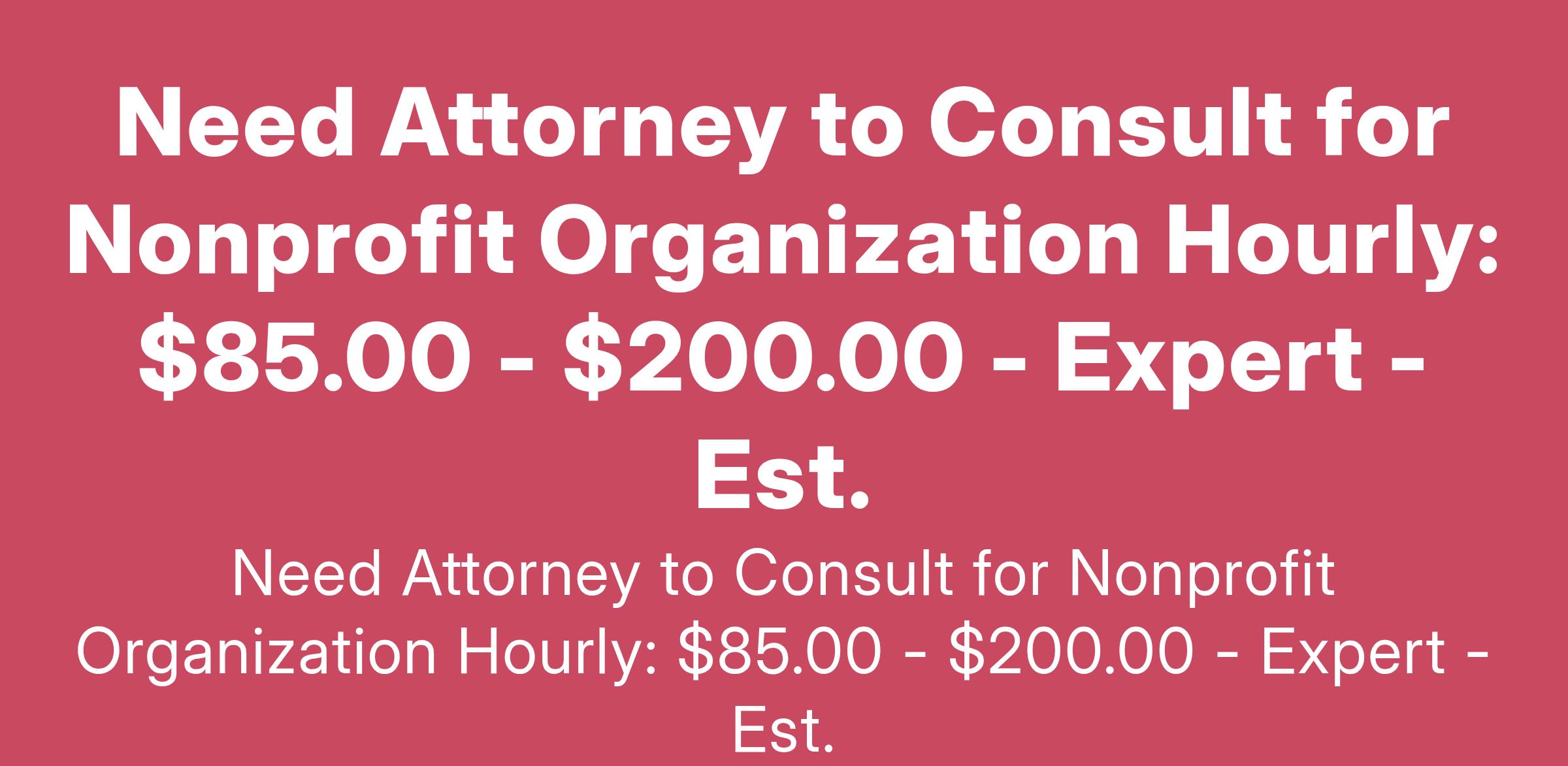 am looking for a US based attorney to assist with my nonprofit organization. I am currently the CoChair (VP) of a national recovery fellowship in which we are seeking an attorney to assist with guidance,... (Budget: $250 - $750 USD, Jobs: Accounting, Bookkeeping, Legal, Legal Research, Tax Law)