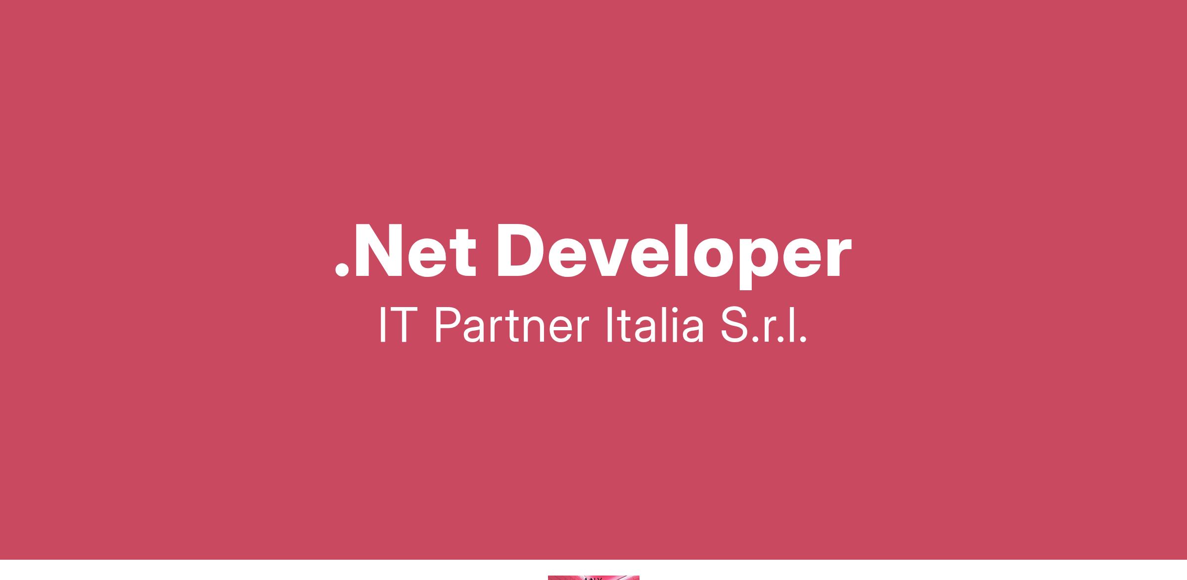 Competenze richieste: IT Partner Italia ricerca candidati con il seguente profilo professionale: .Net Developer Siamo alla ricerca di una risorsa con almeno 3 anni di esperienza in sviluppo .Net che abbia i seguenti requisiti: - Conoscenza di C#, T-SQL e Xaml - Conoscenza della programmazione ad oggetti, pattern MVVM - Creazione crud API Rest - Entity framework Core - Dependency injection - Programmazione asincrona Si prega di inviare il CV dettagliato in formato europeo all'indirizzo indicando il codice posizione 2025-009-RM-NET ed autorizzando il trattamento dei dati personali ai sensi del D. Lgs. 196/2003. L'offerta è rivolta a candidati di entrambi i sessi nel rispetto delle norme sulle parità di trattamento in materia di occupazione e di condizioni di lavoro (D.Lgs. 216/03).