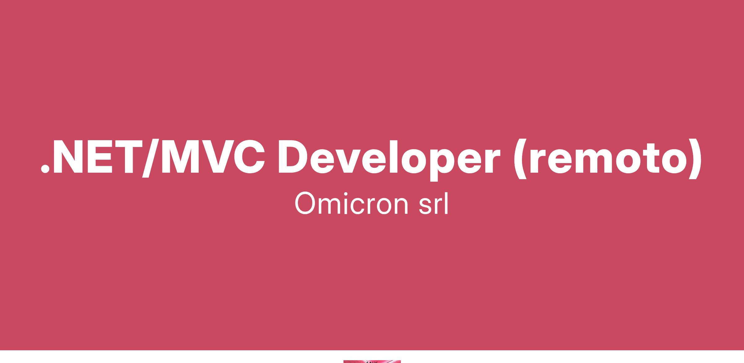 Omicron S.r.l., società in forte espansione nell’area della consulenza informatica ricerca: .NET/MVC Developer (remoto) • .net 6.0 e successivi • .net 4.5 • entity framework • servizi rest • jquery • sql server (modellazione dati e query) • pattern mvc • opzionale db non relazionali (es. mongodb) Si offre: • Possibilità di contratto a tempo indeterminato. • Retribuzione fissa commisurata alle effettive competenze maturate. Sede di lavoro: remoto Gl’interessati possono candidarsi inviando il CV all'indirizzo mail: L’offerta si intende rivolta a candidati ambosessi, nel rispetto del D.Lgs. n. 198/2006 e ss.mm.ii. e dei Decreti Legislativi n. 215 e n. 216 del 2003 sulle parità di trattamento. I candidati sono invitati a leggere l’informativa privacy ai sensi degli artt. 13 e 14 del Reg. EU 679/2016.
