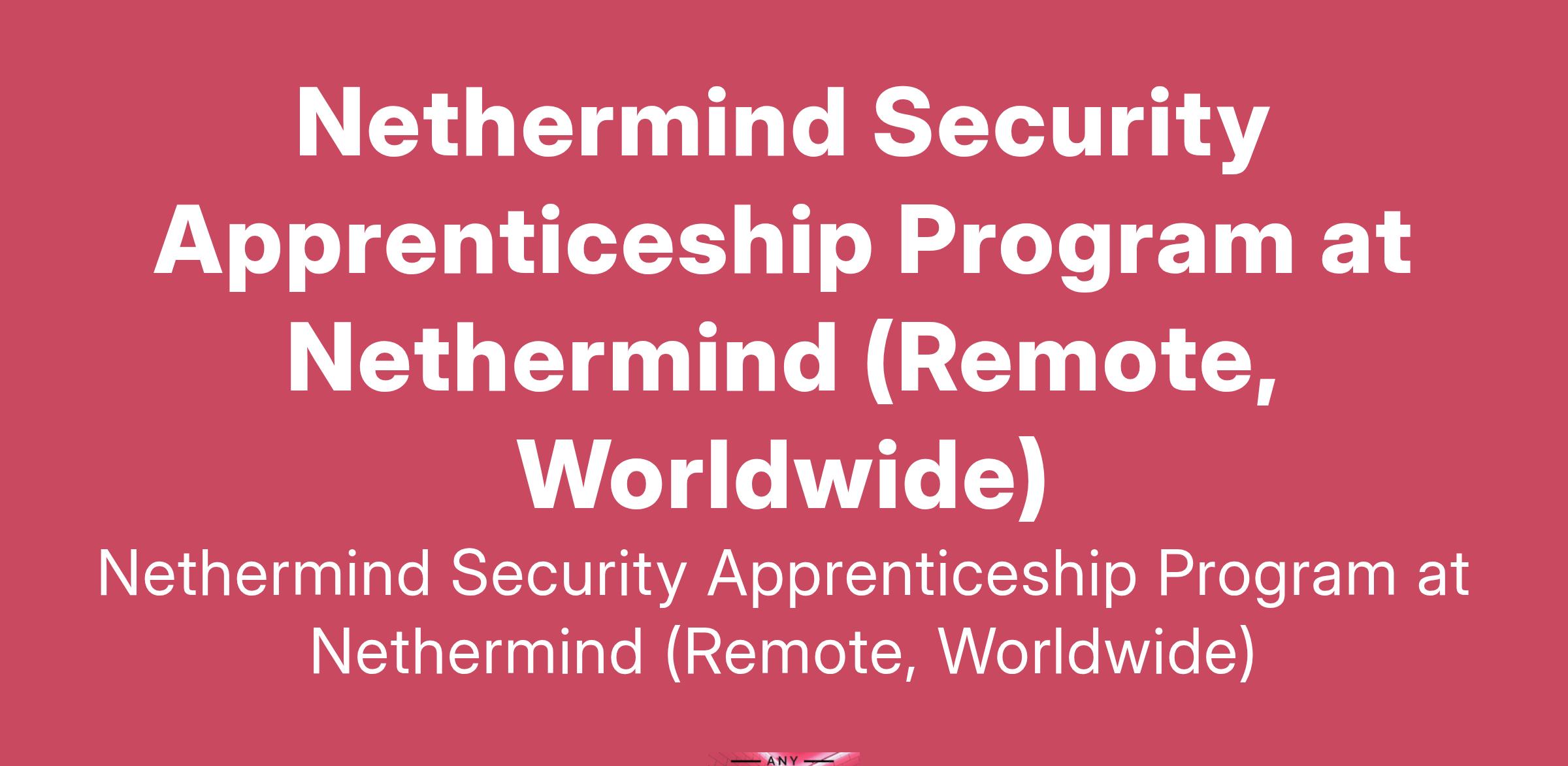 Nethermind Security Apprenticeship Program at Nethermind (Remote, Worldwide)