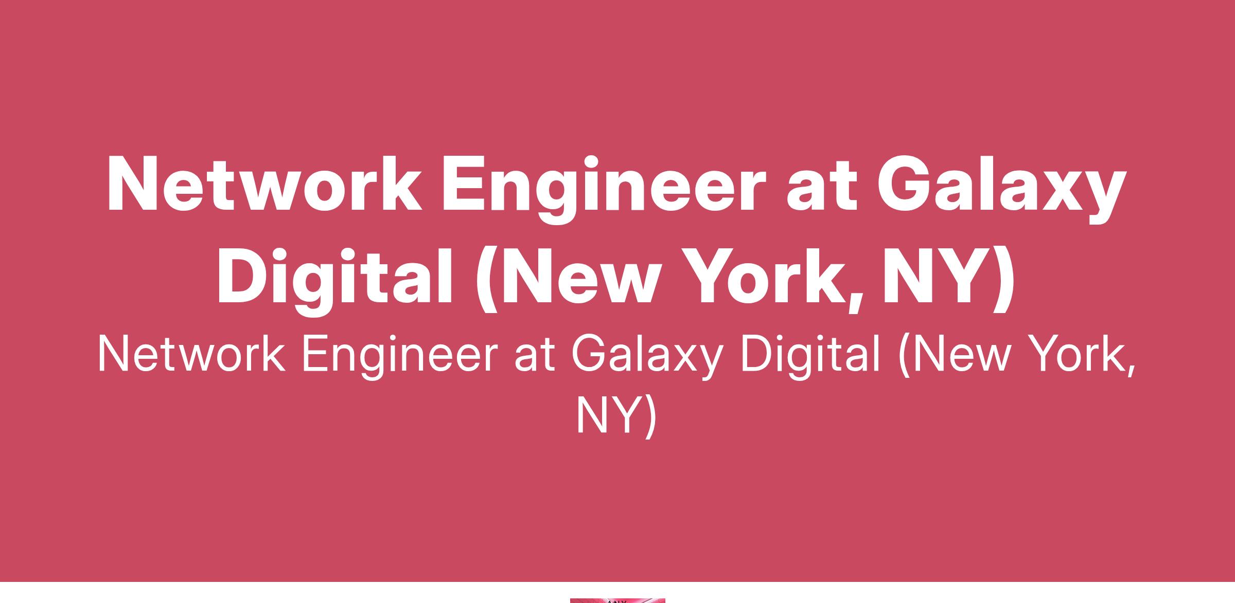 Network Engineer at Galaxy Digital (New York, NY)