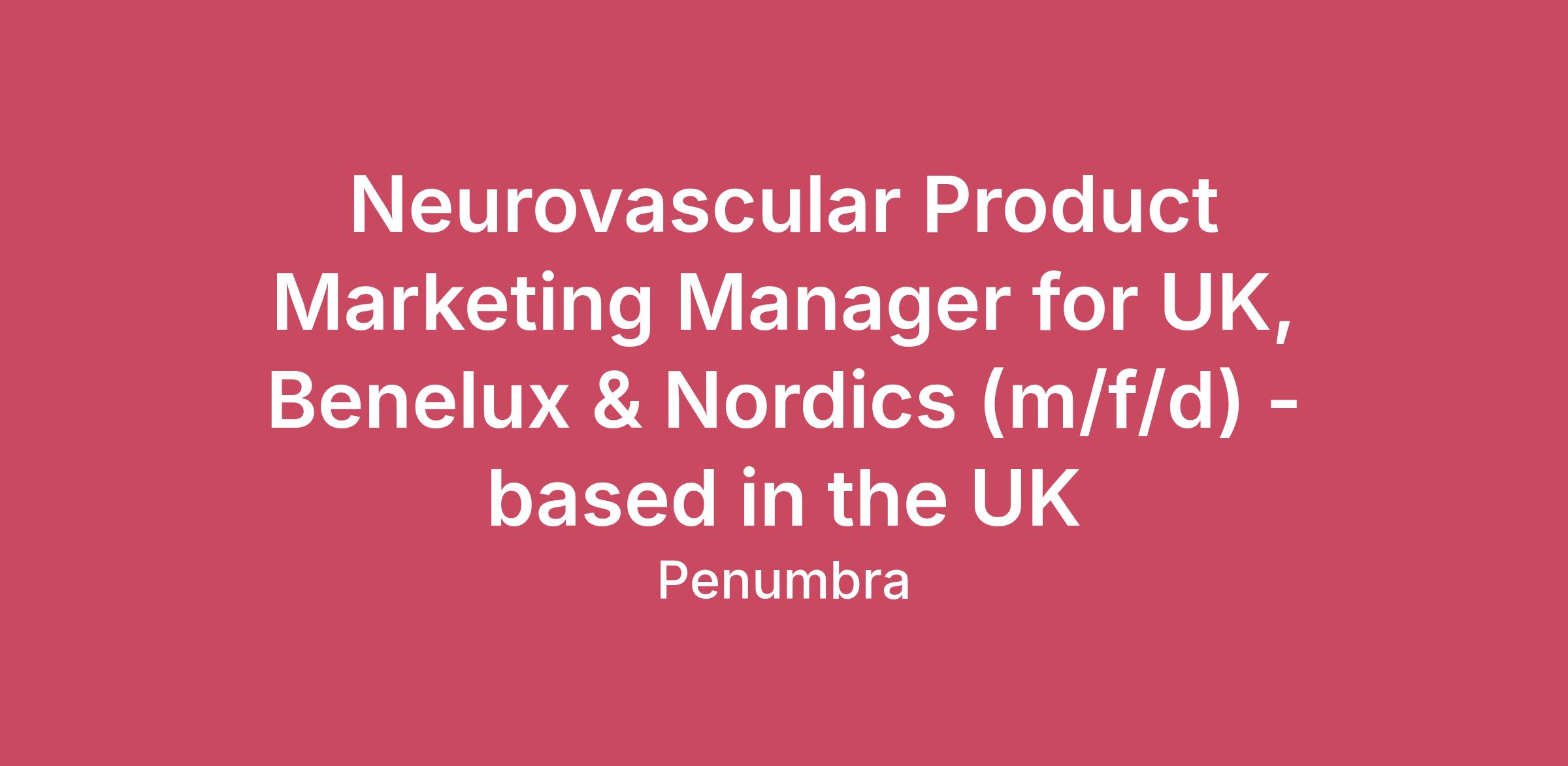 Neurovascular Product Marketing Manager for UK, Benelux & Nordics (m/f/d) - based in the UK