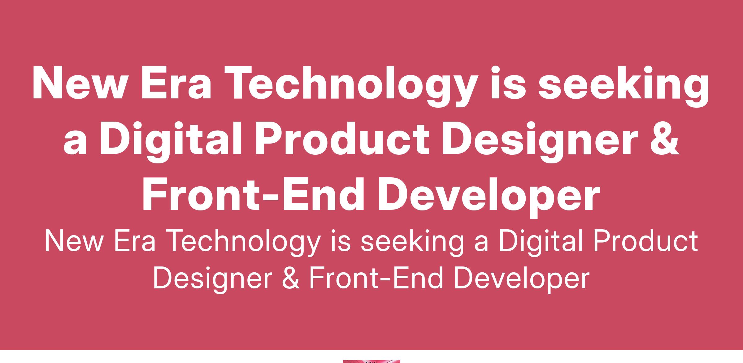 New Era Technology is seeking a Digital Product Designer & Front-End Developer