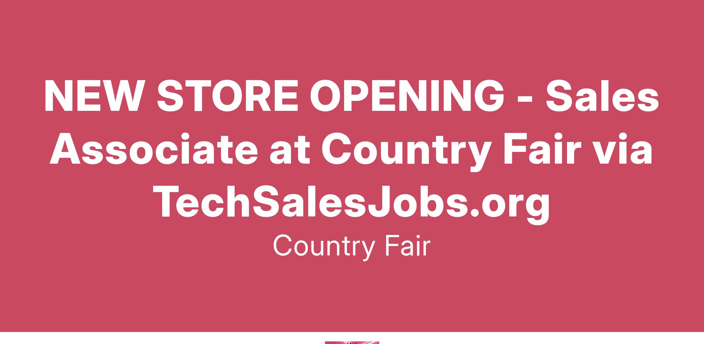 NEW STORE OPENING - Sales Associate at Country Fair via TechSalesJobs.org