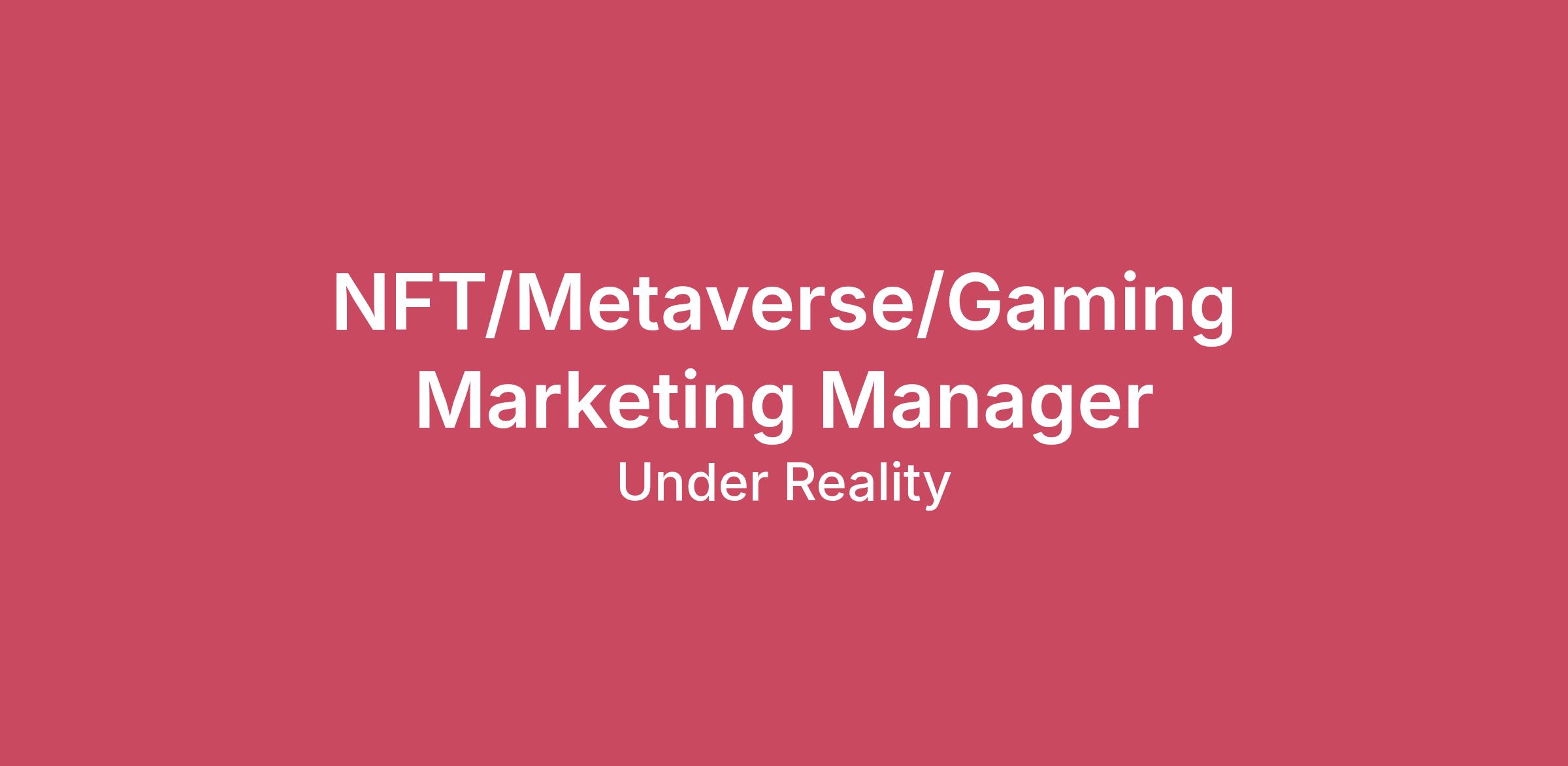 We’re looking for an NFT/Metaverse/Gaming Marketing Manager at Under Reality HeadQuarters in Amsterdam, as of June 1st, 2022. Under Reality is a digital media, entertainment, and technology company that creates stunning, high-quality services.